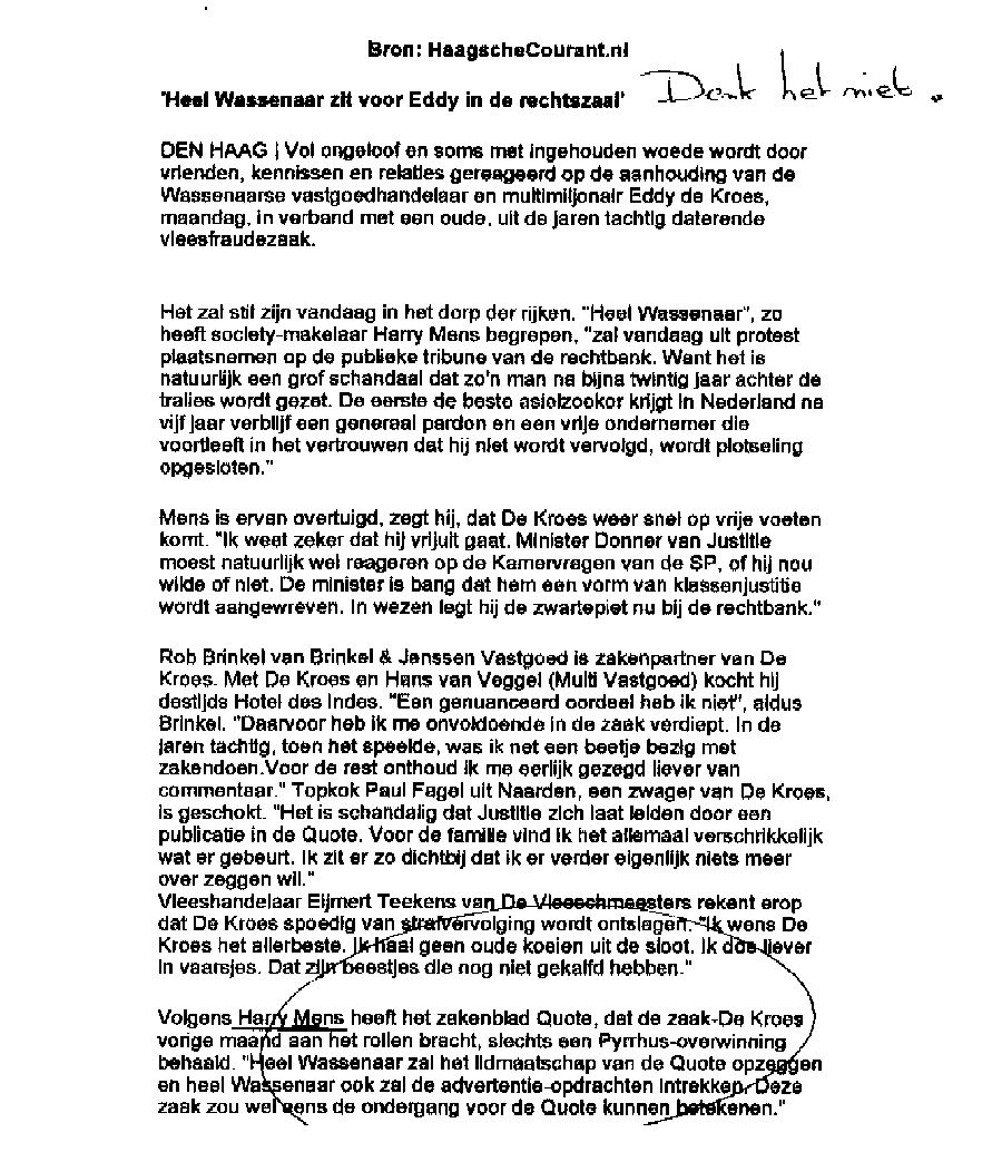 Faxbericht aan mr. Maes van Kees Griesdoorn over schijneisers