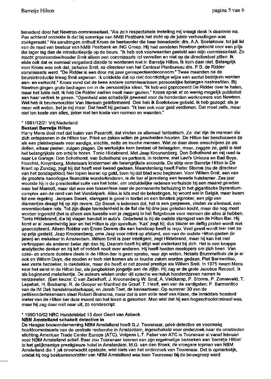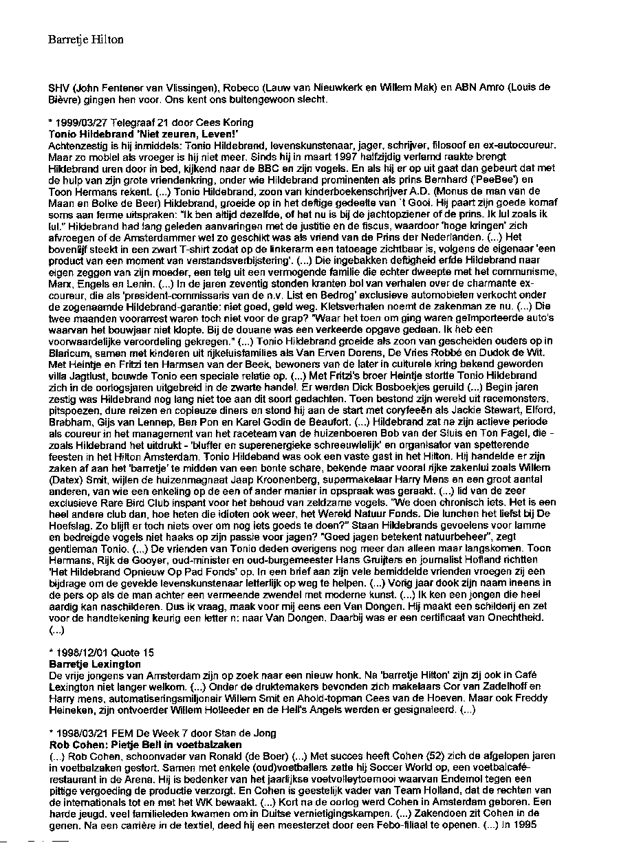 Barretje Hilton, het contactcentrum voor het grote geld