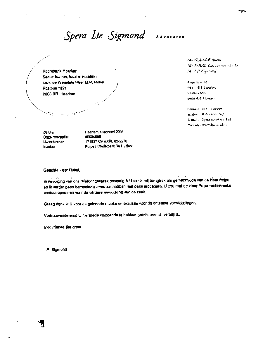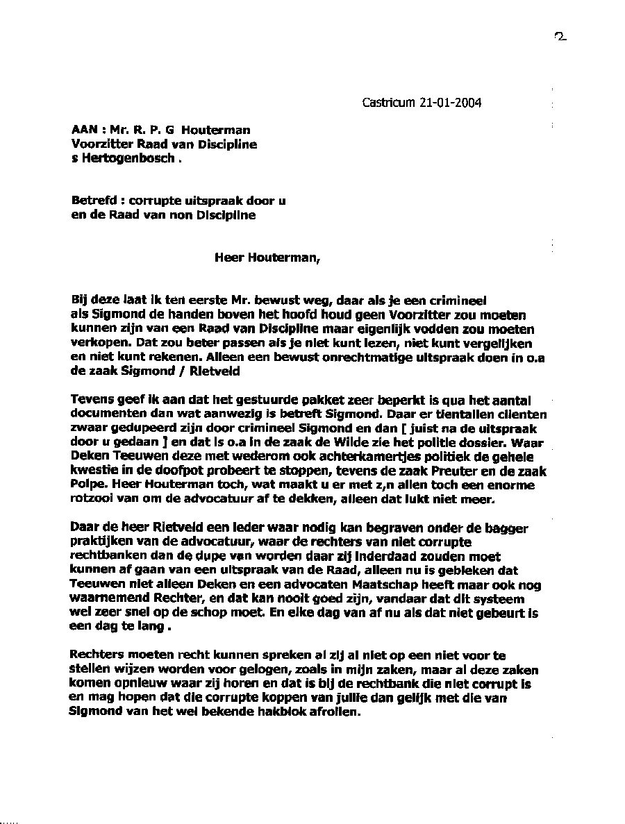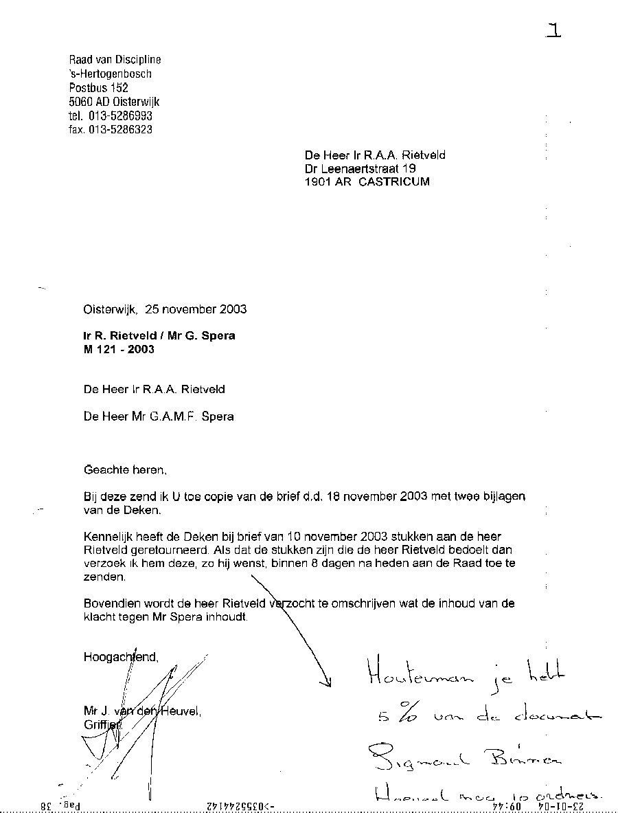 Correspondentie aan mr. R.P.G. Houterman voorzitter