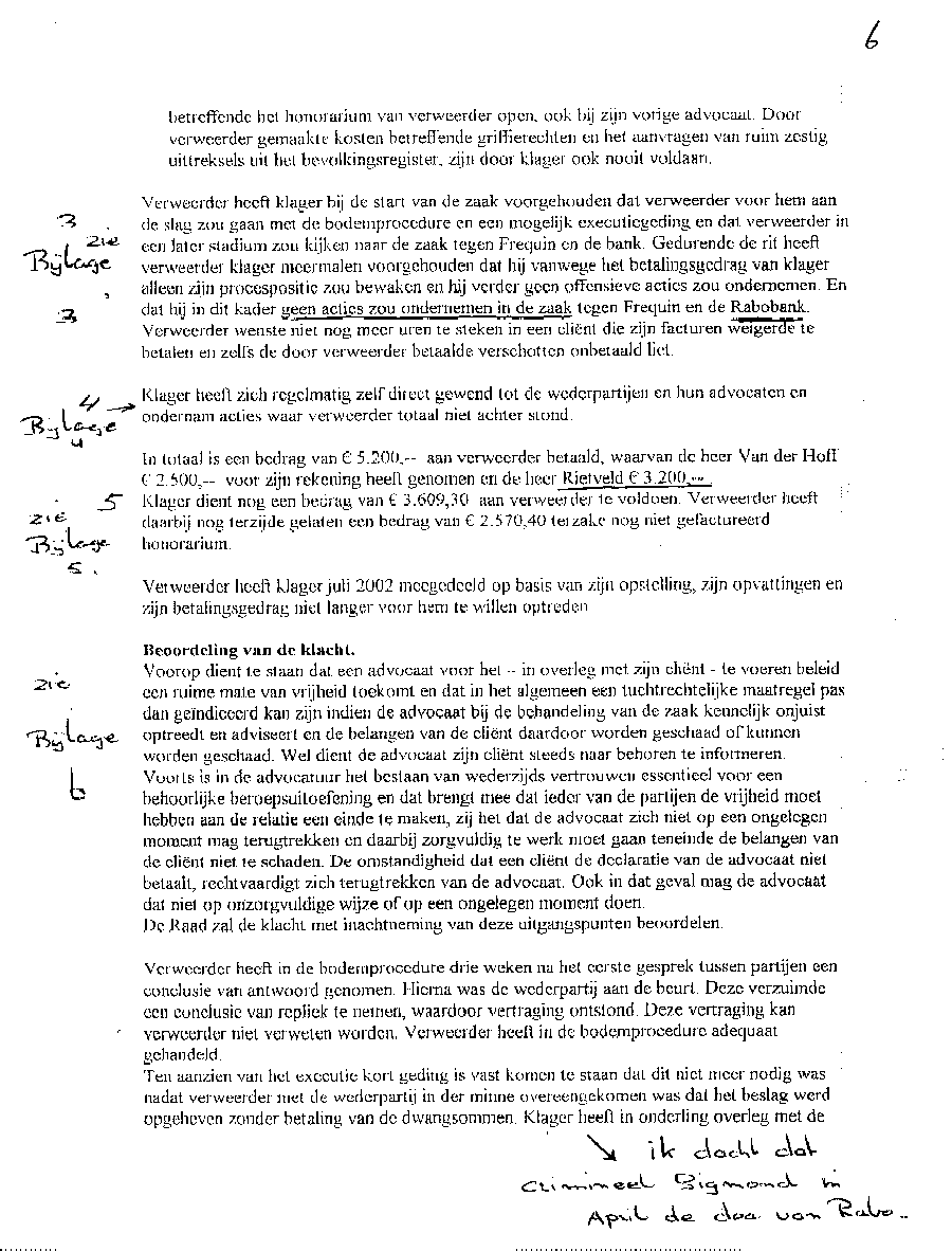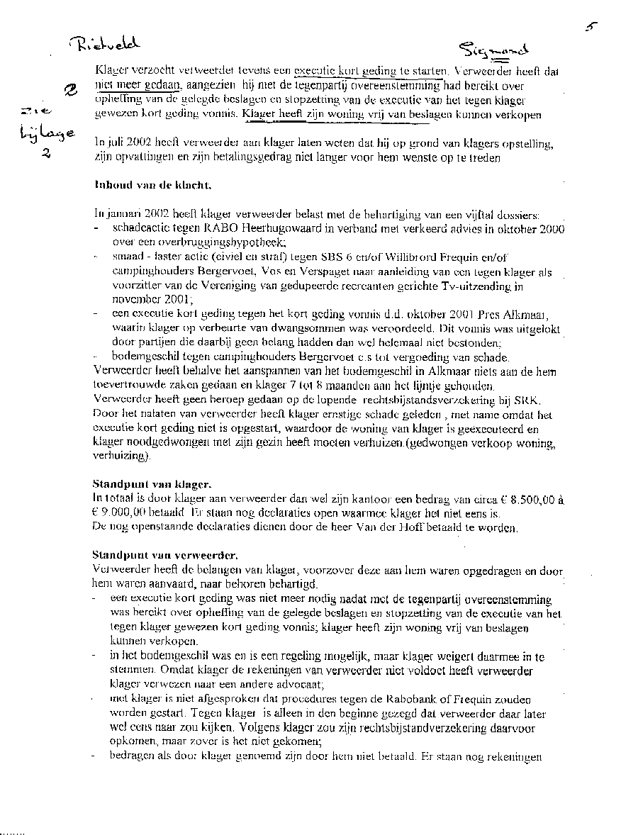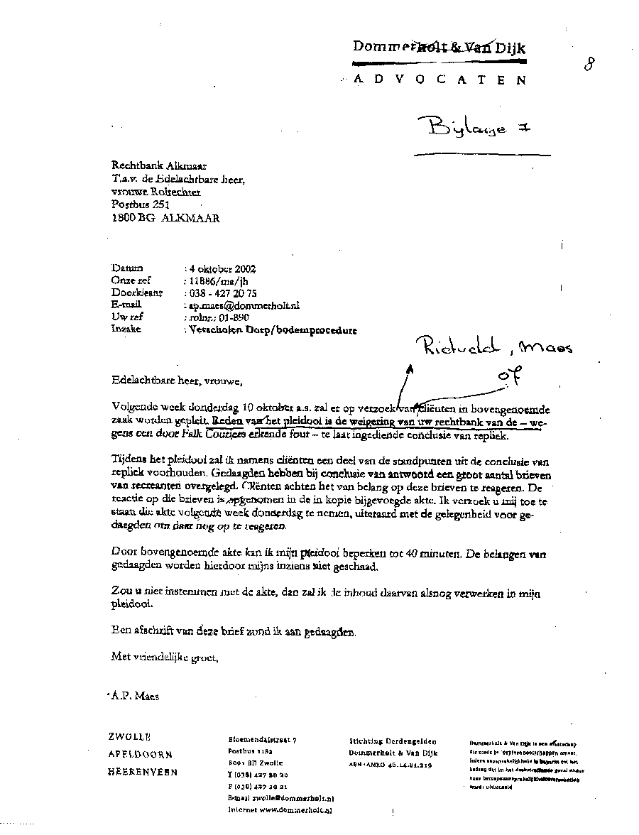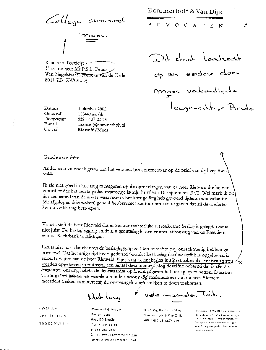 Document met procedure tegen mr. Maes van Dommerholt & van Dijk in Zwolle