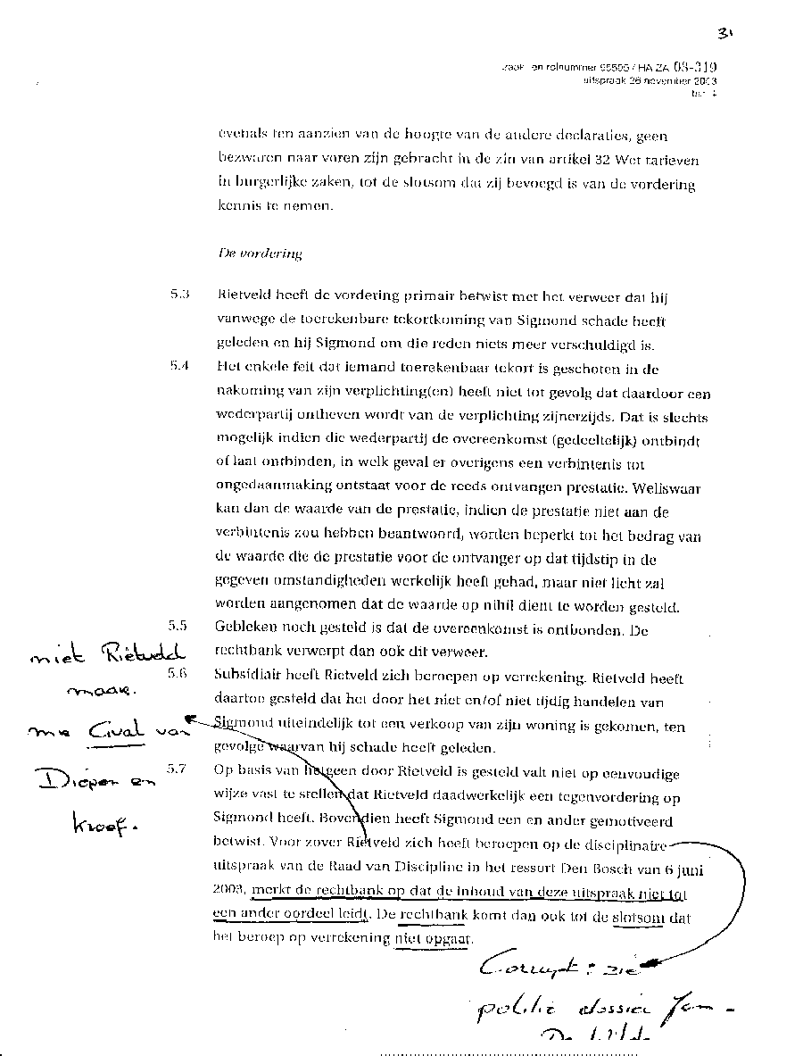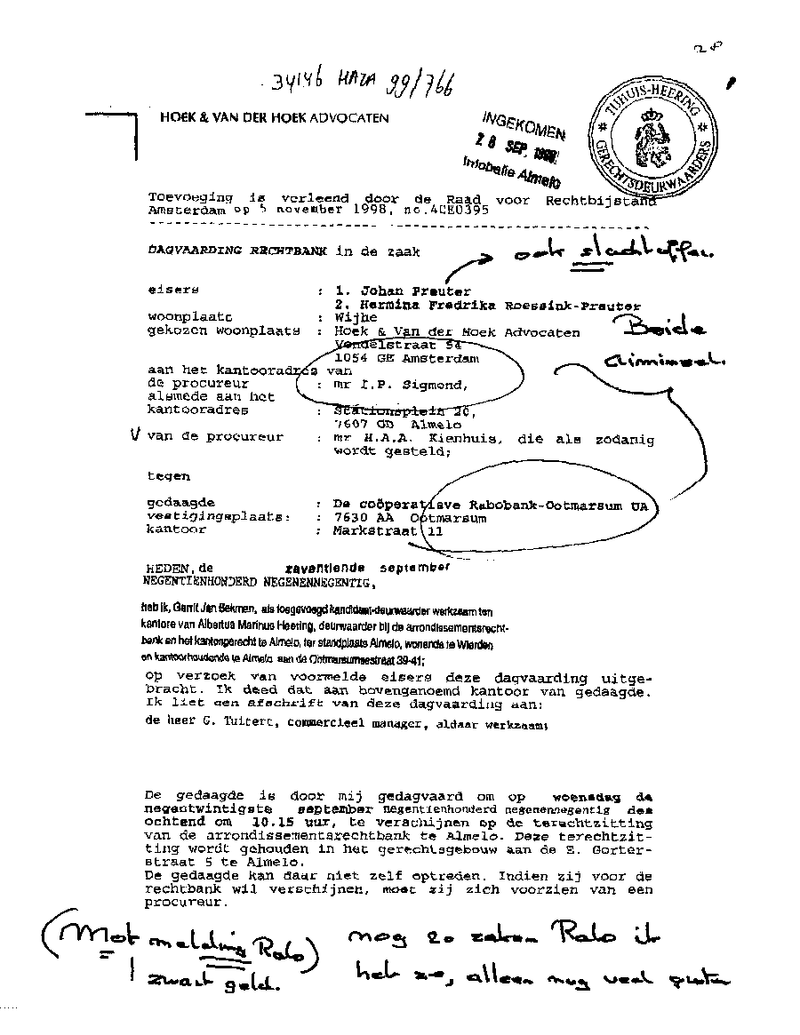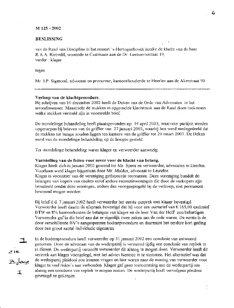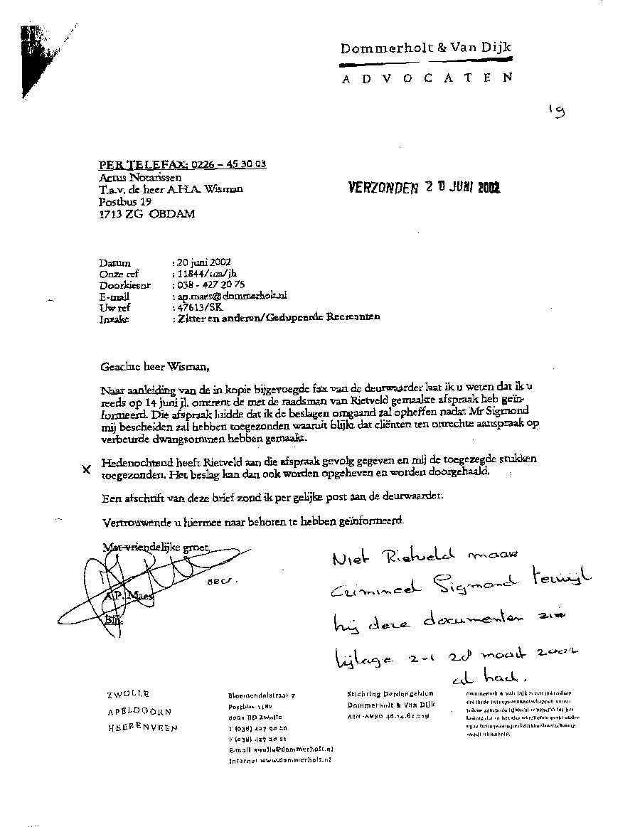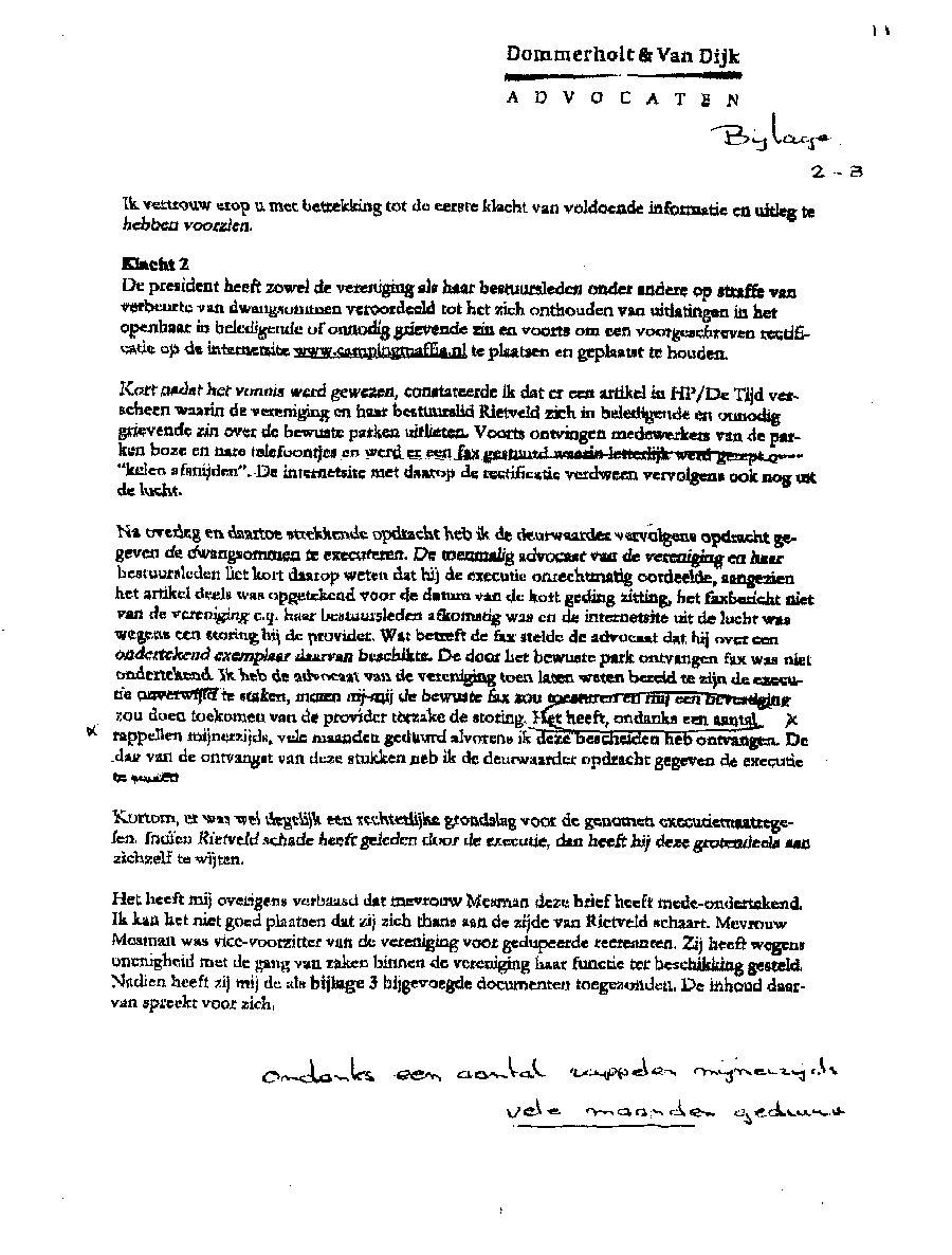 Document met procedure tegen mr. Maes van Dommerholt & van Dijk in Zwolle