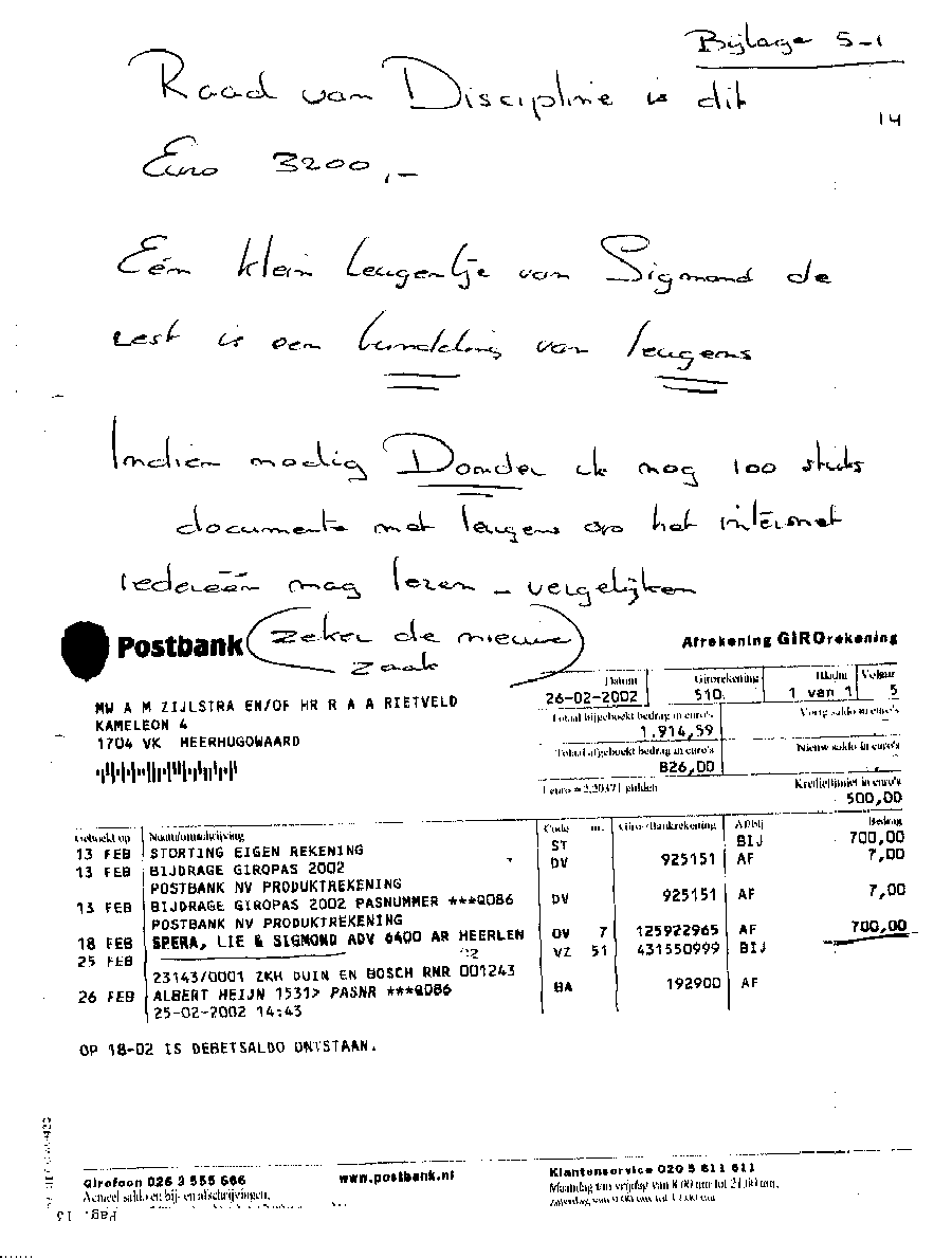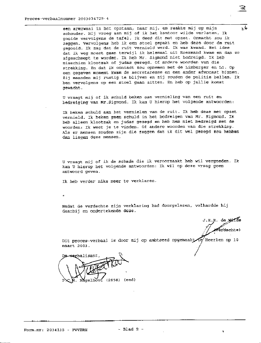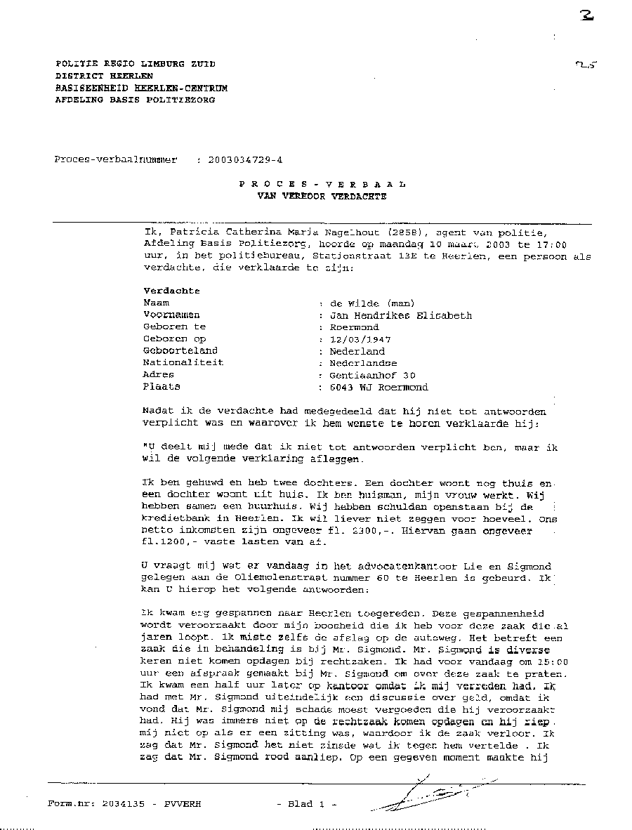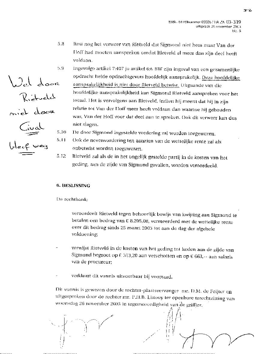 Document met procedure tegen mr. Maes van Dommerholt & van Dijk in Zwolle