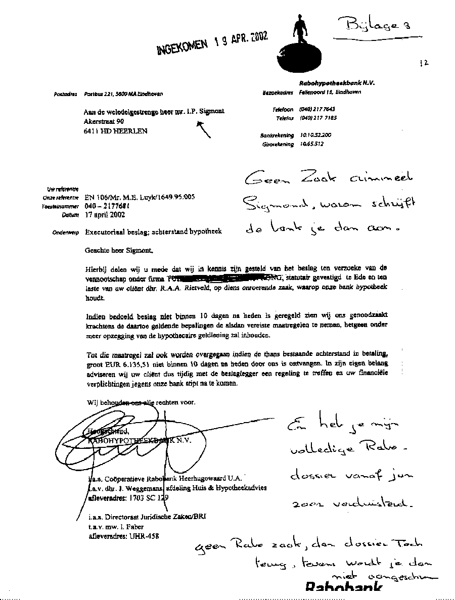 Erkenning van mr. Sigmond dat hij op 28-3-2002 wist van de documenten