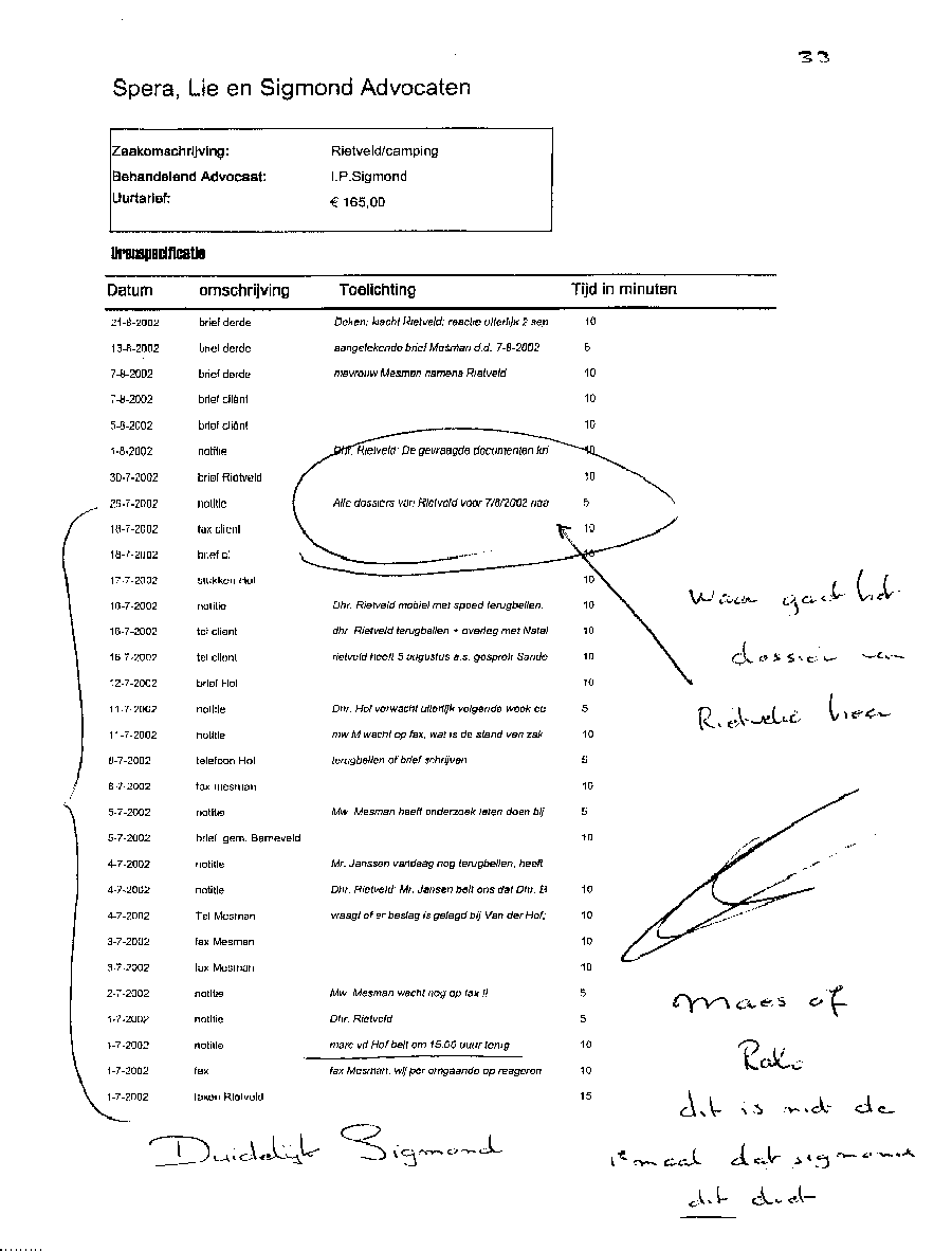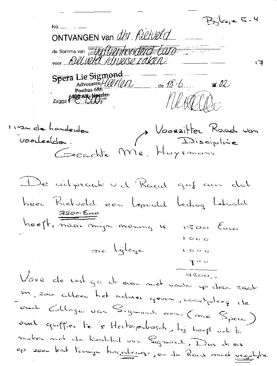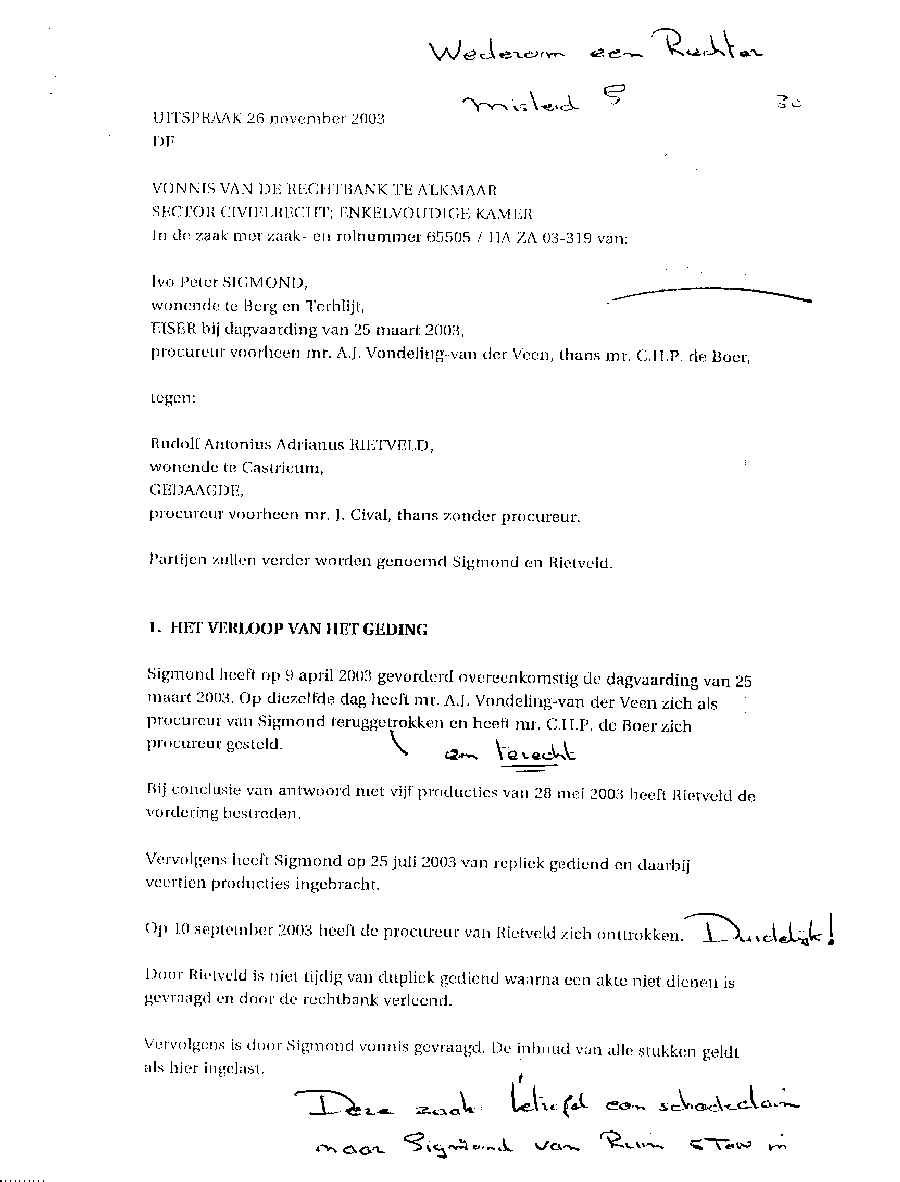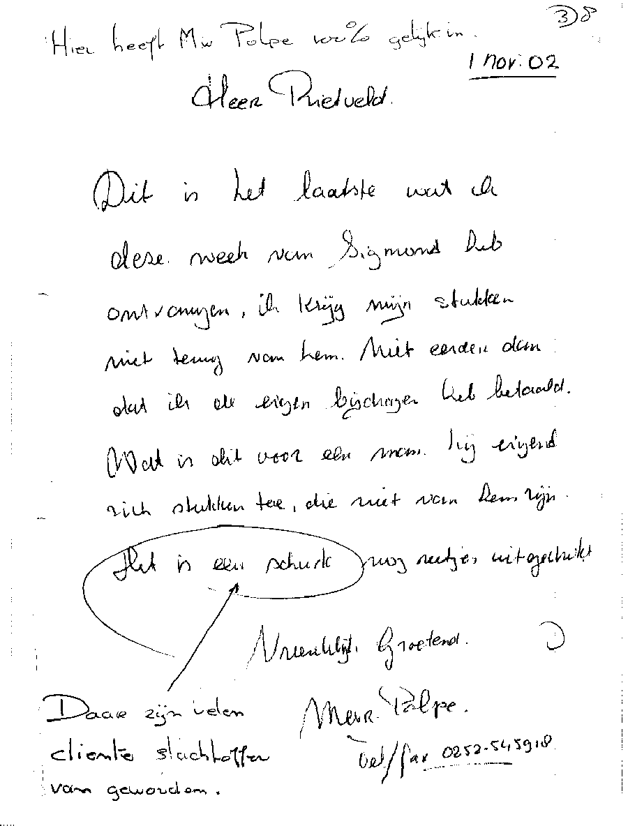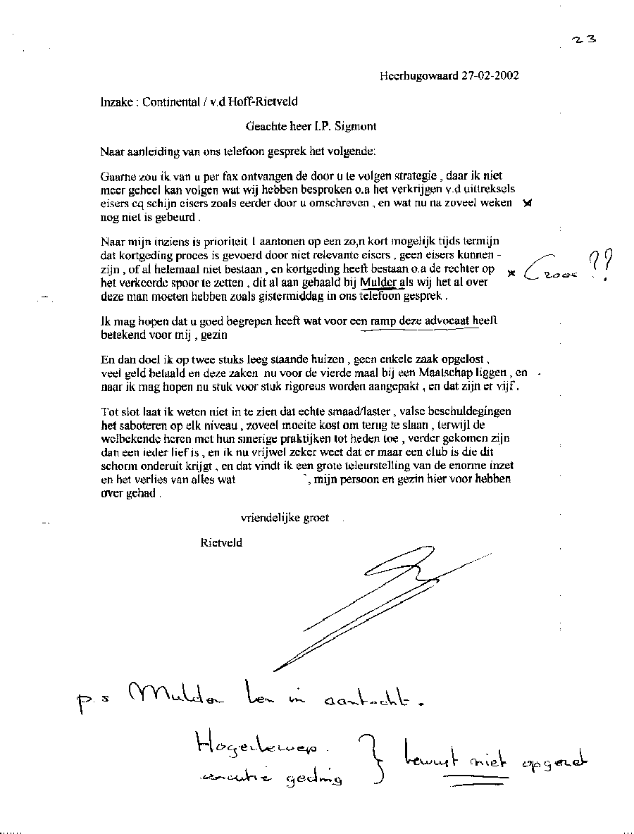 Verwijt aan mr. Sigmond over z'n inactiviteit. Wel betalen, maar niet kunnen halen!