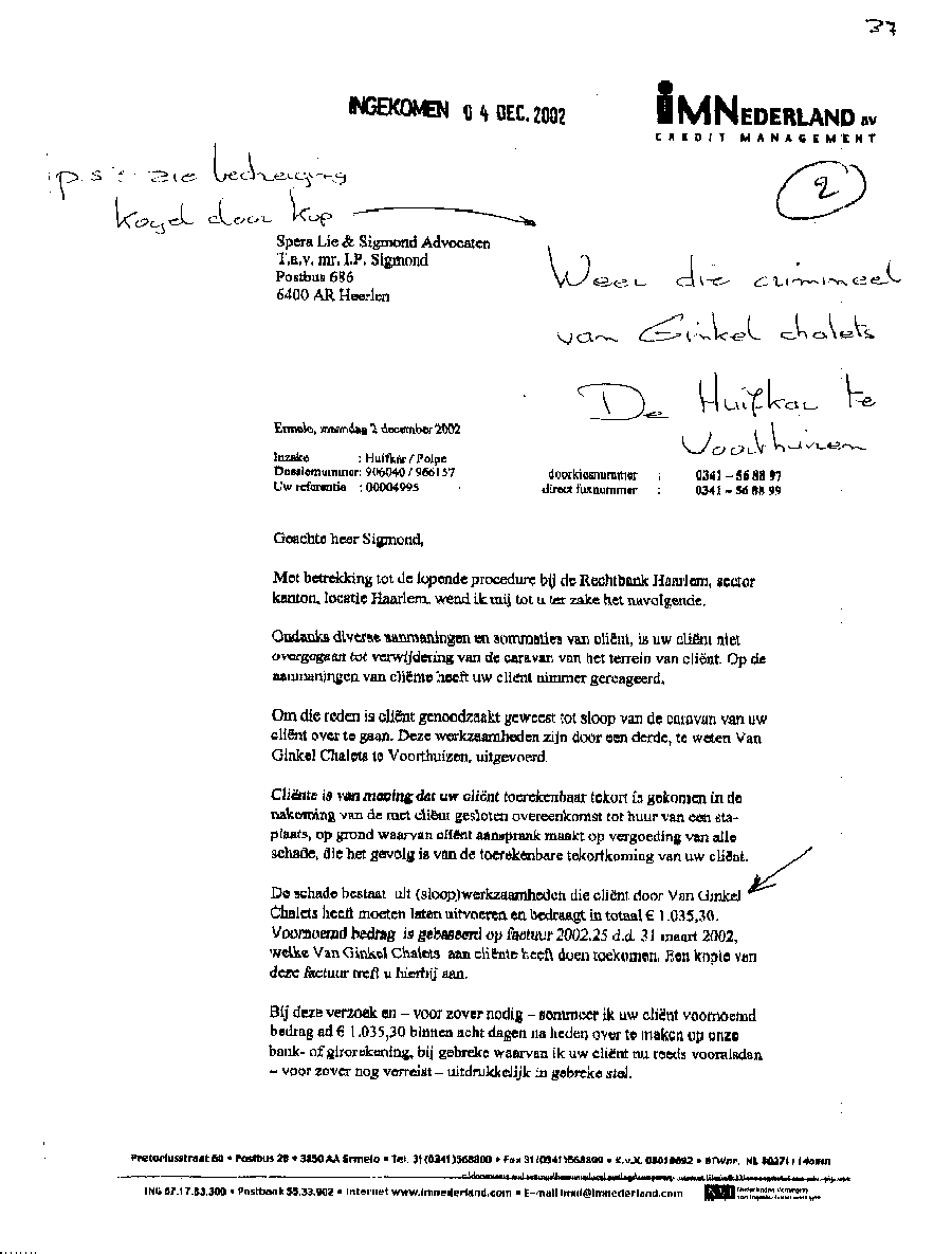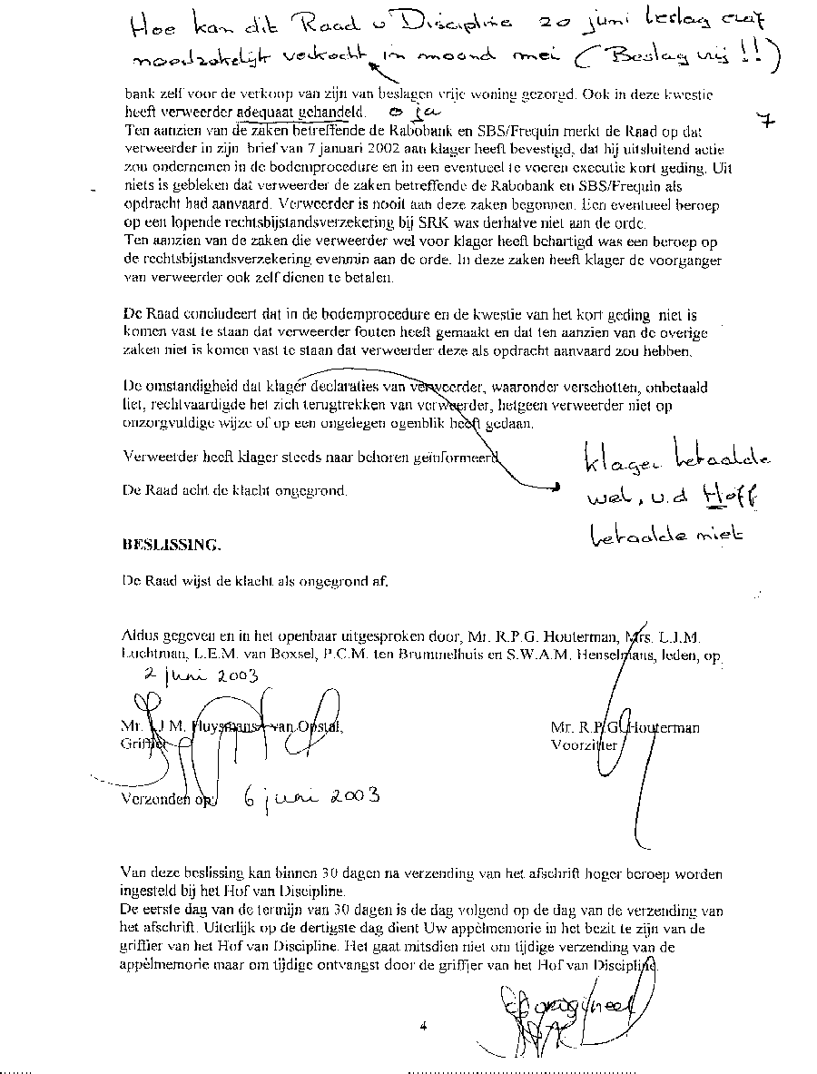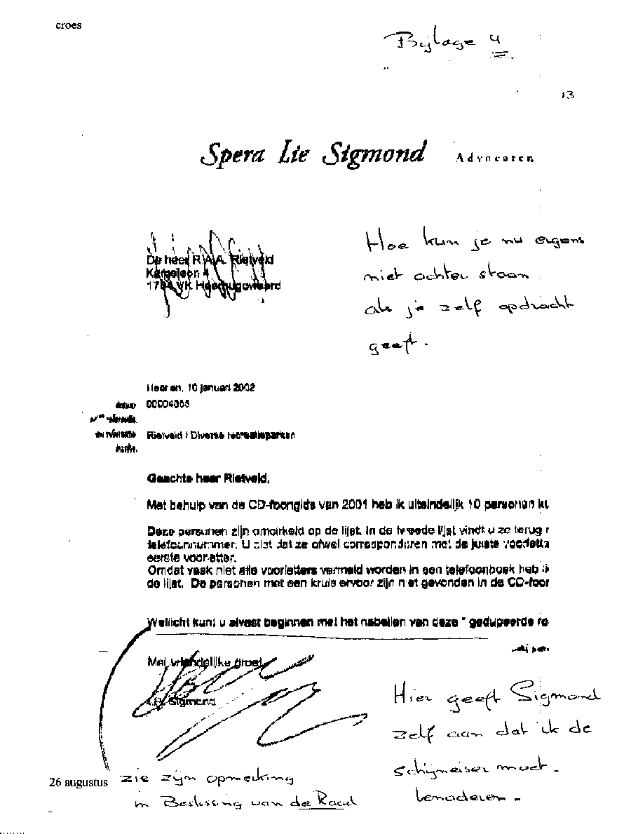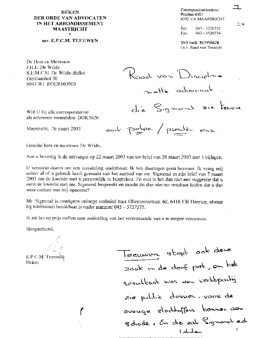 Verwijt aan mr. Sigmond over z'n inactiviteit. Wel betalen, maar niet kunnen halen!