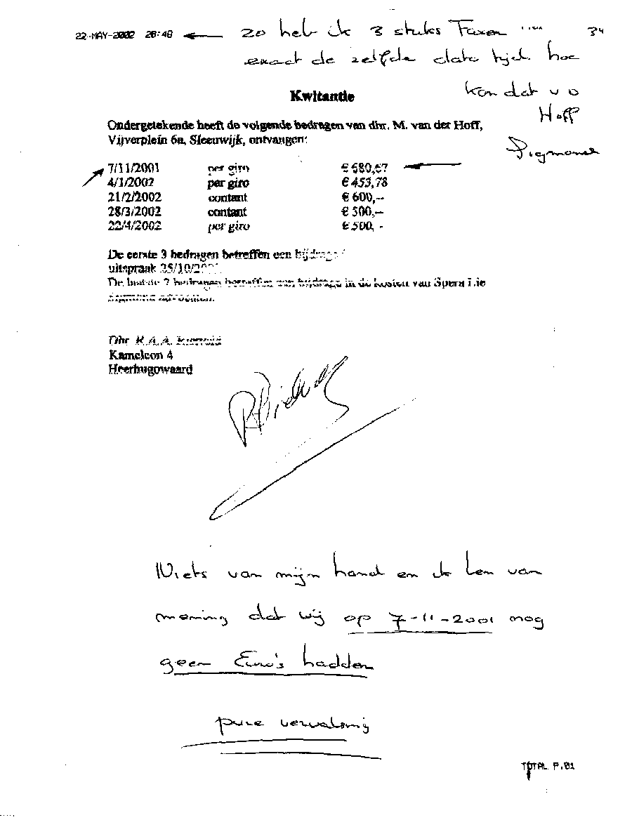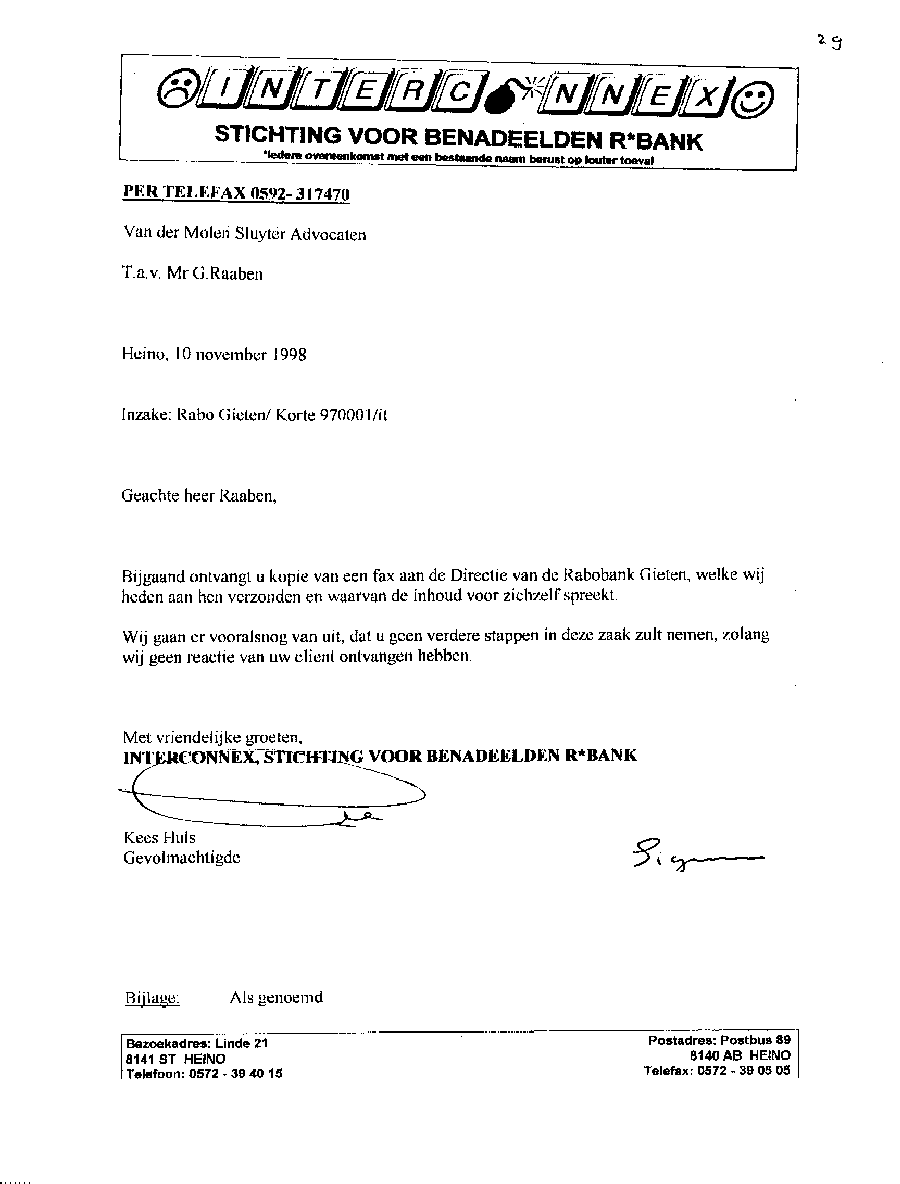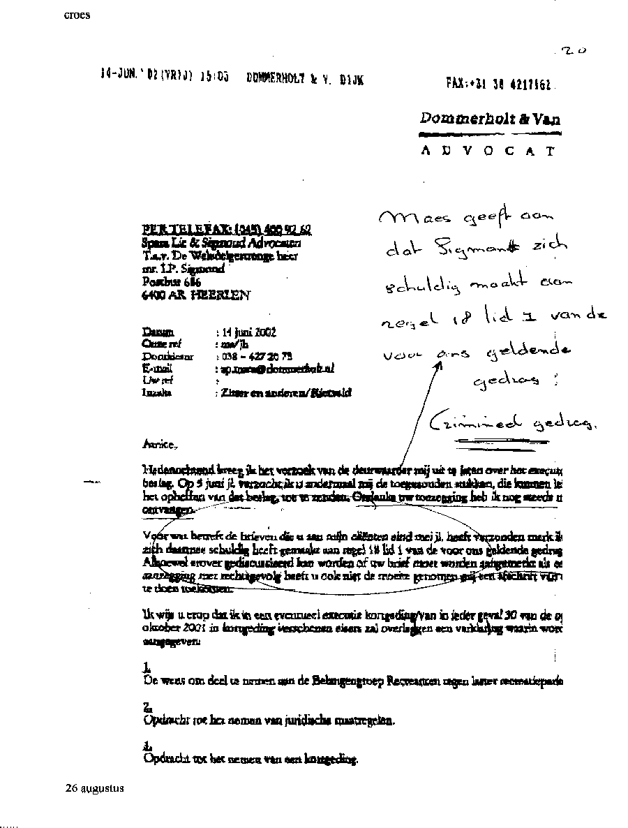 Faxbericht aan mr. Maes van Kees Griesdoorn over schijneisers