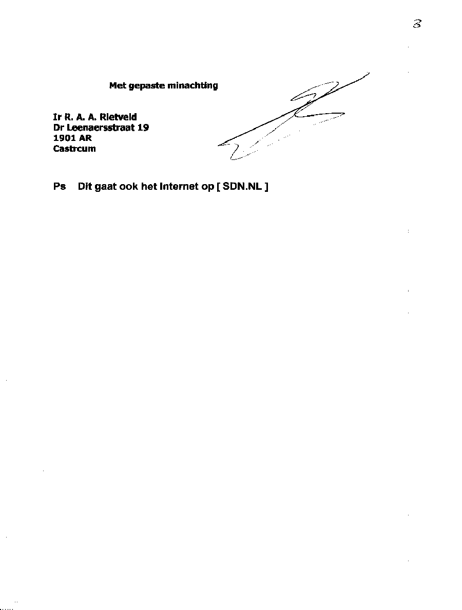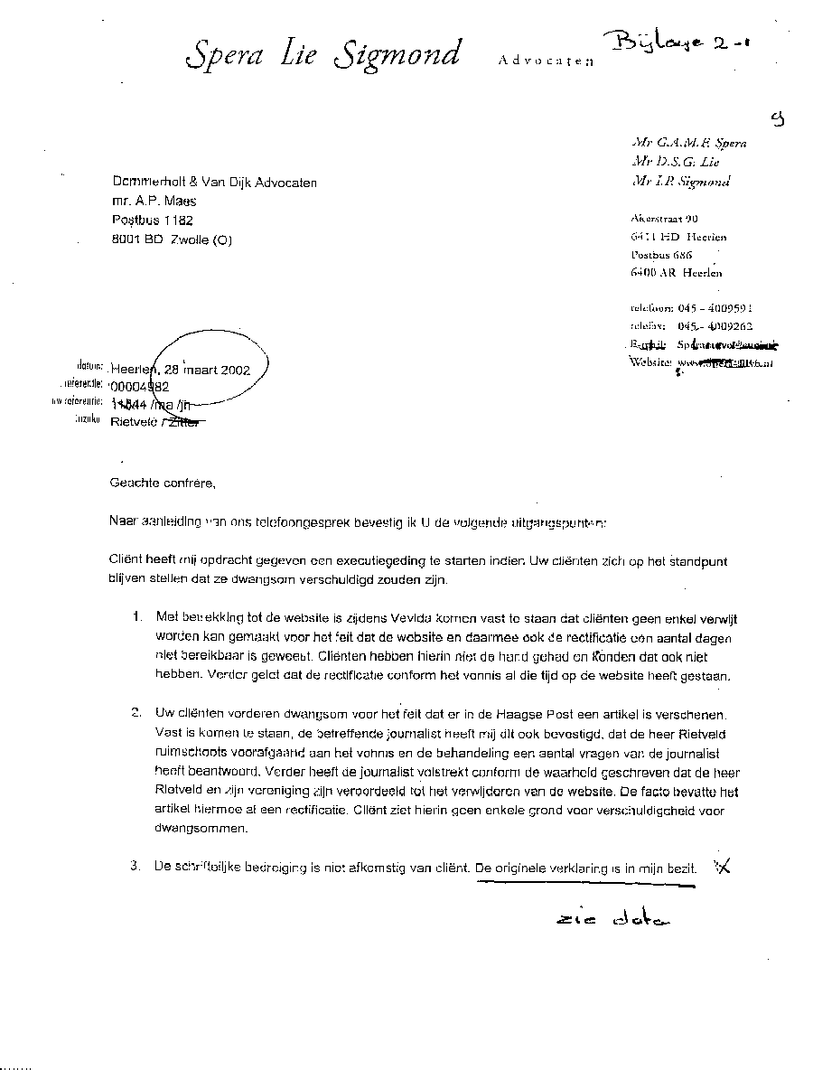 Brief aan SDN met de sommatie om de website van Rietveld te verwijderen
