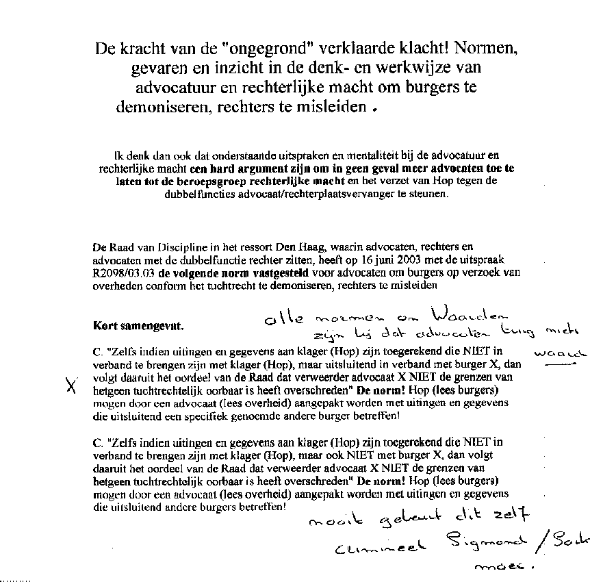 Verwijt aan mr. Sigmond over z'n inactiviteit. Wel betalen, maar niet kunnen halen!