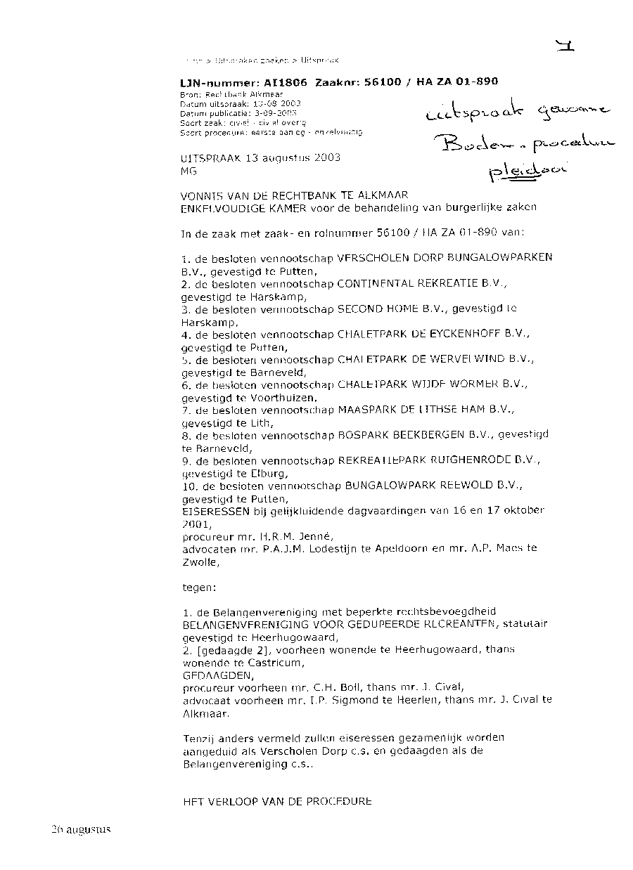 Tevens de uitspraak in die zaak van de Rechtbank Alkmaar