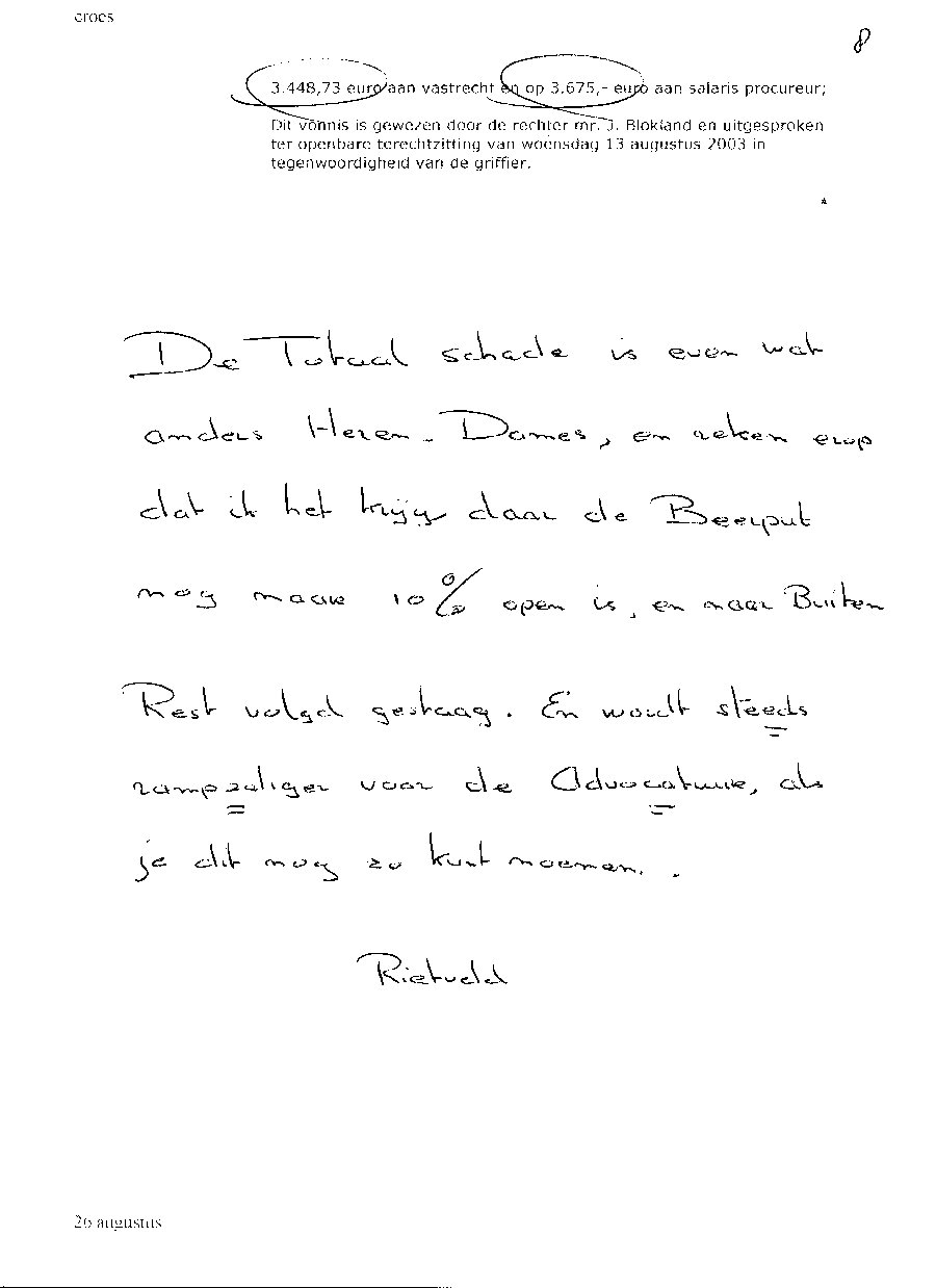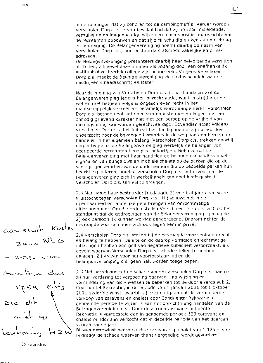 Document met procedure tegen mr. Maes van Dommerholt & van Dijk in Zwolle