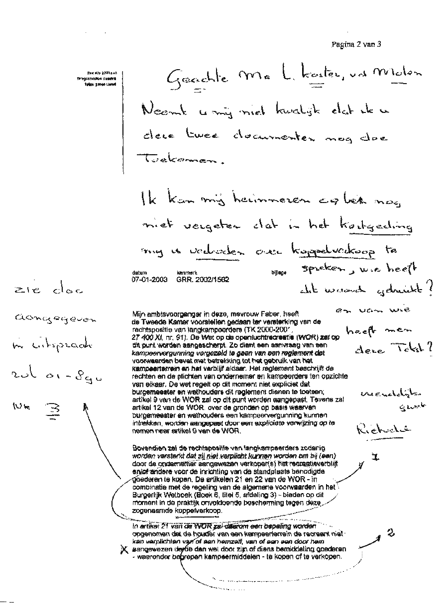 VROM met onderwerp koppelverkoop aan langkampeerders