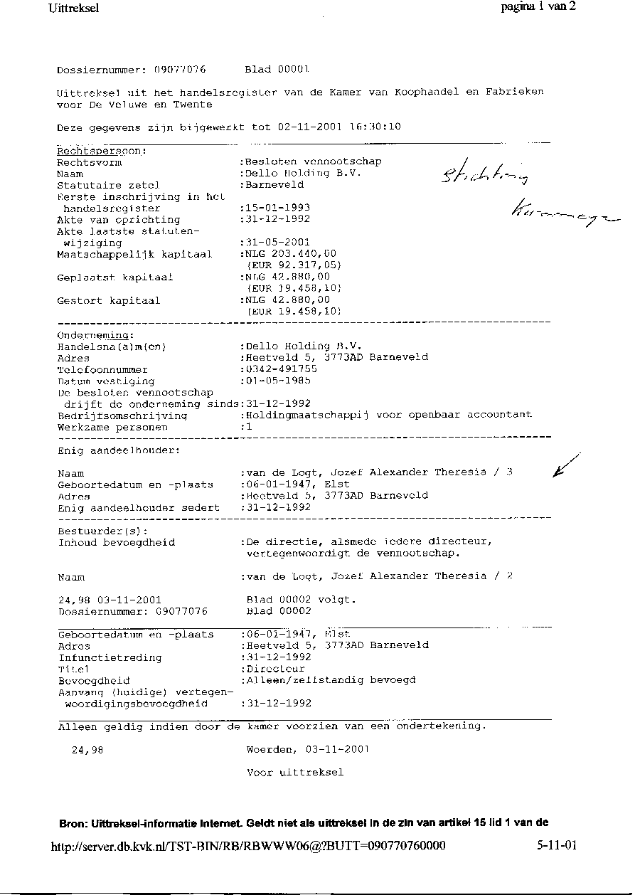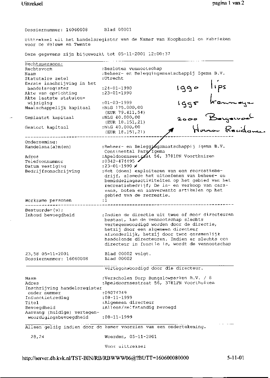 Kadastergegevens Kamer van Koophandel van conglomeraat van parken van Bergervoet sr.