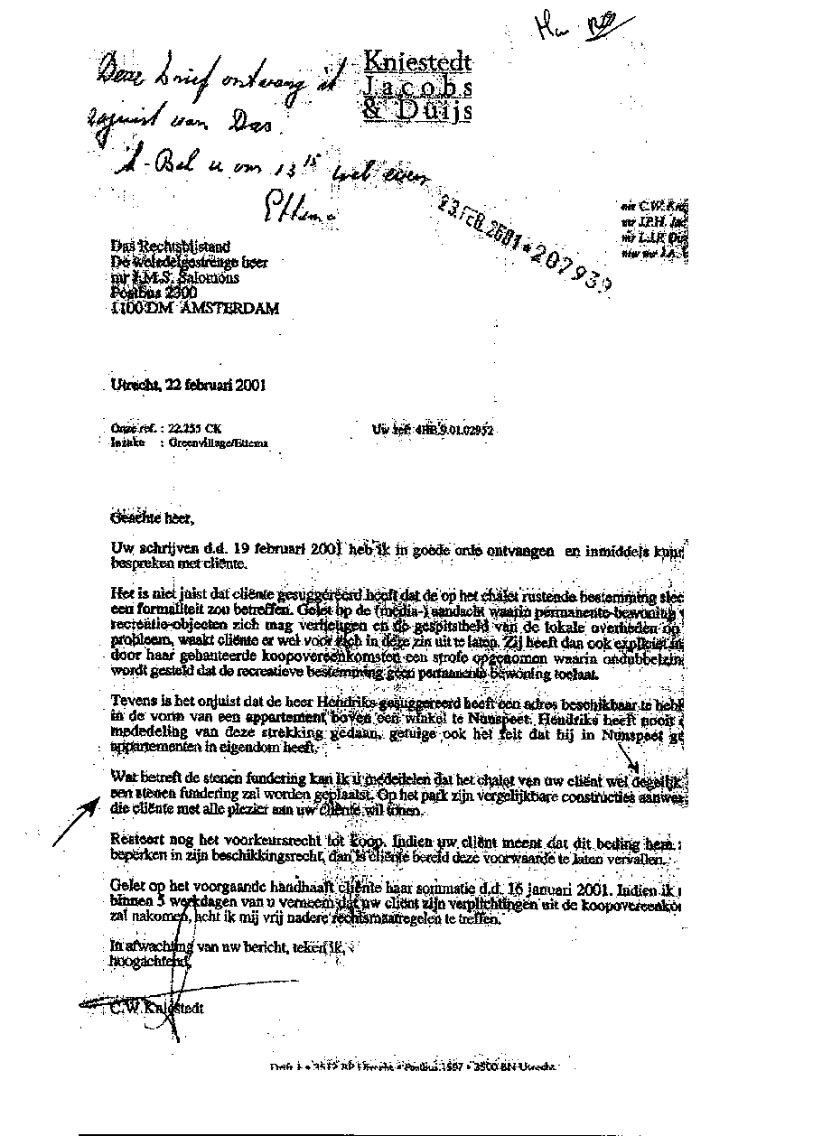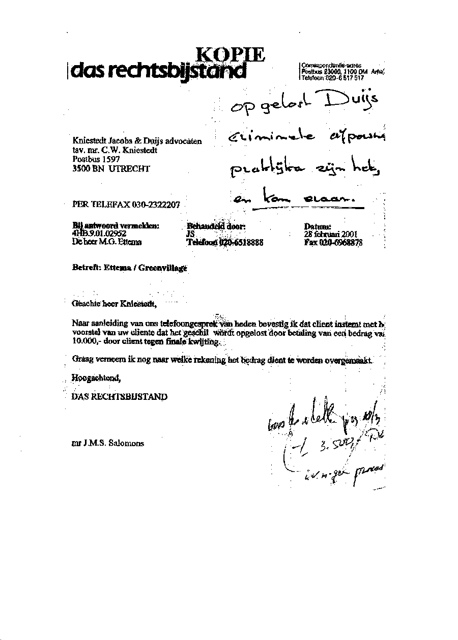 Faxbericht aan mr. Maes van Kees Griesdoorn over schijneisers