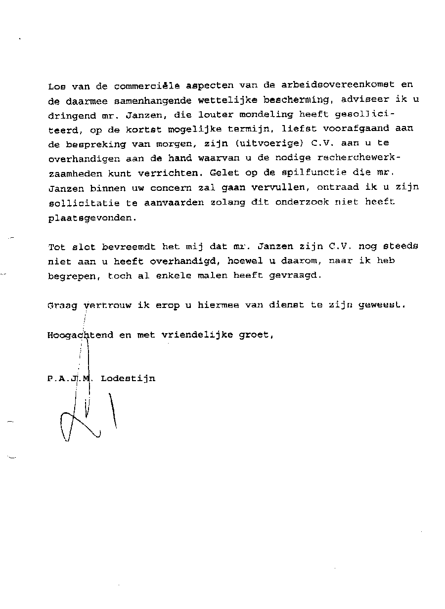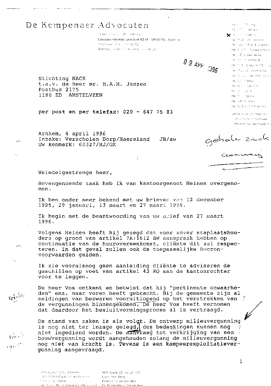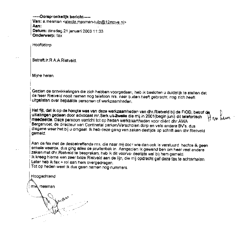 Faxbericht aan mr. Maes van Kees Griesdoorn over schijneisers
