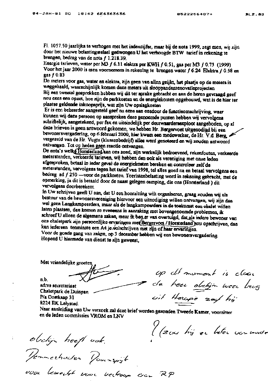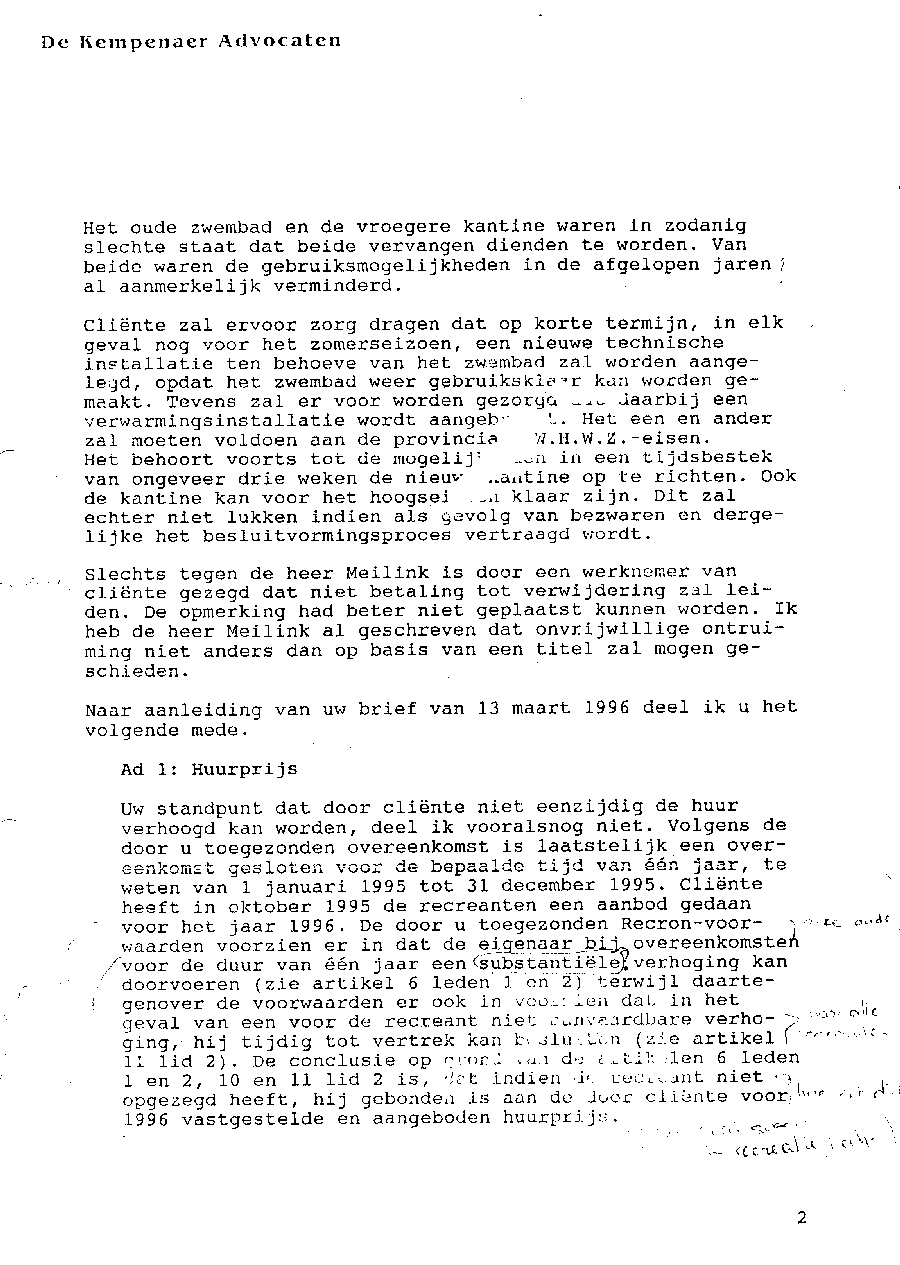 Voorlopige conclusie van Rietveld aan de recreanten en semi-permanente bewoners