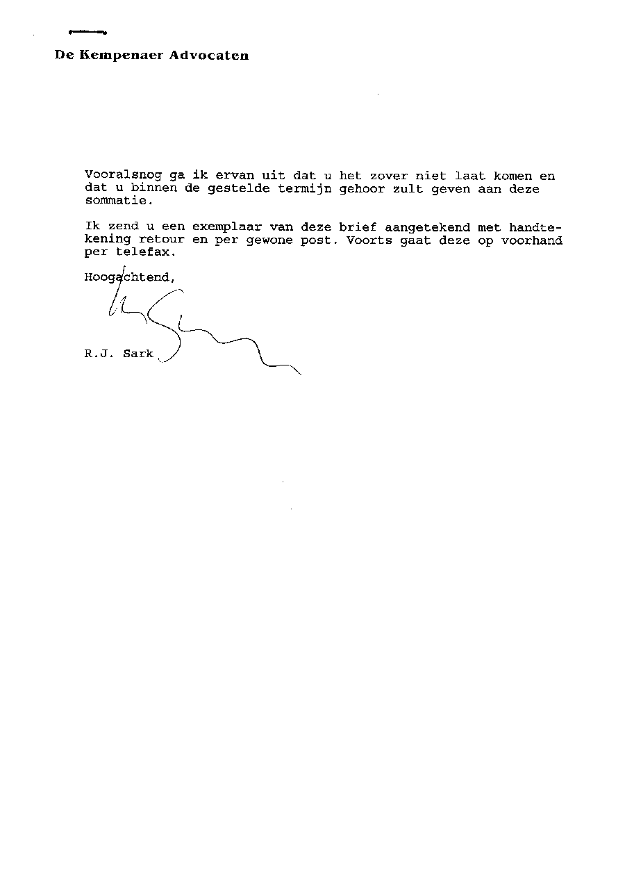 Zwendelpraktijken van mr. R.J. Sark van De Kempenaer Advocaten in Arnhem