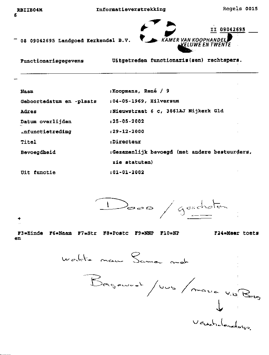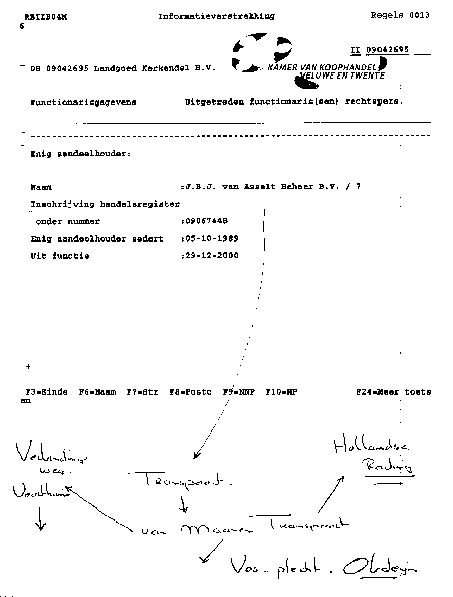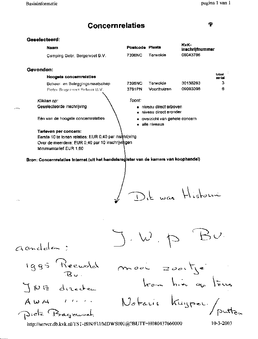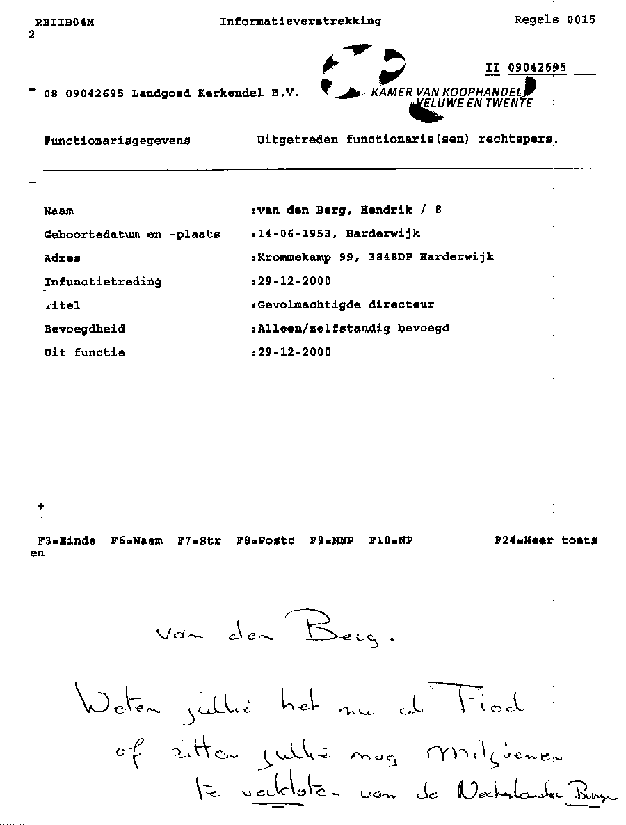 Kadastergegevens Kamer van Koophandel van conglomeraat van parken van Bergervoet sr.