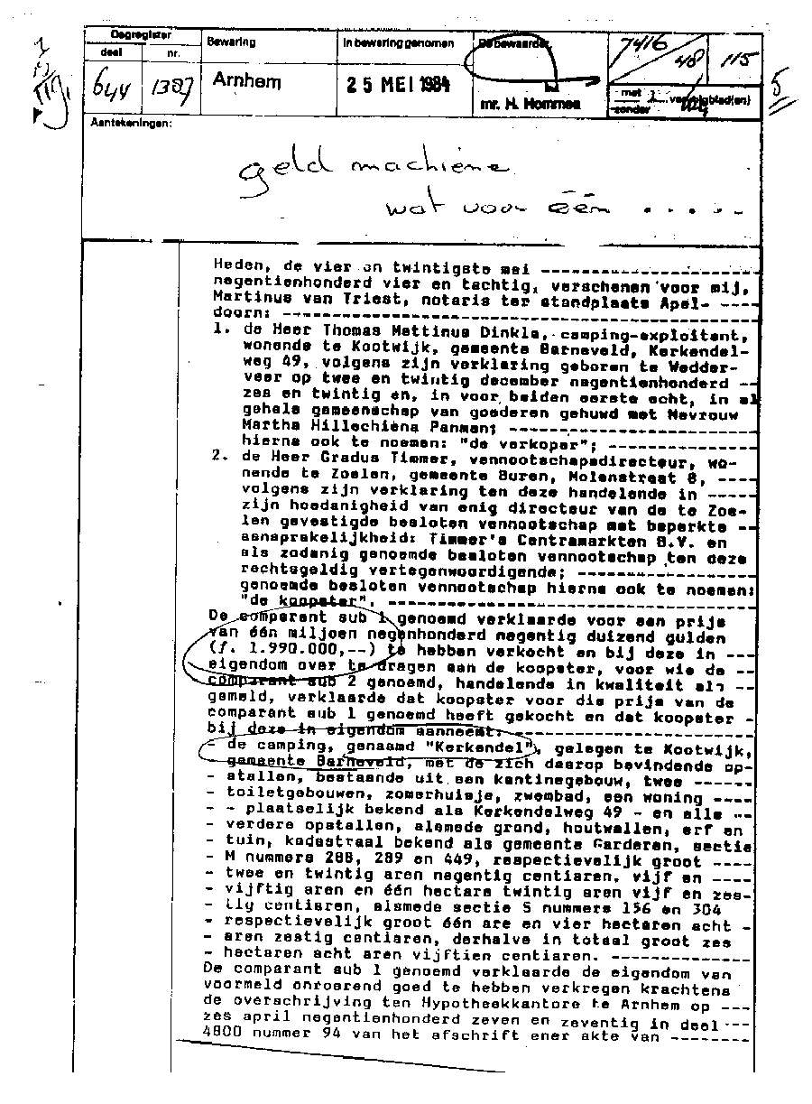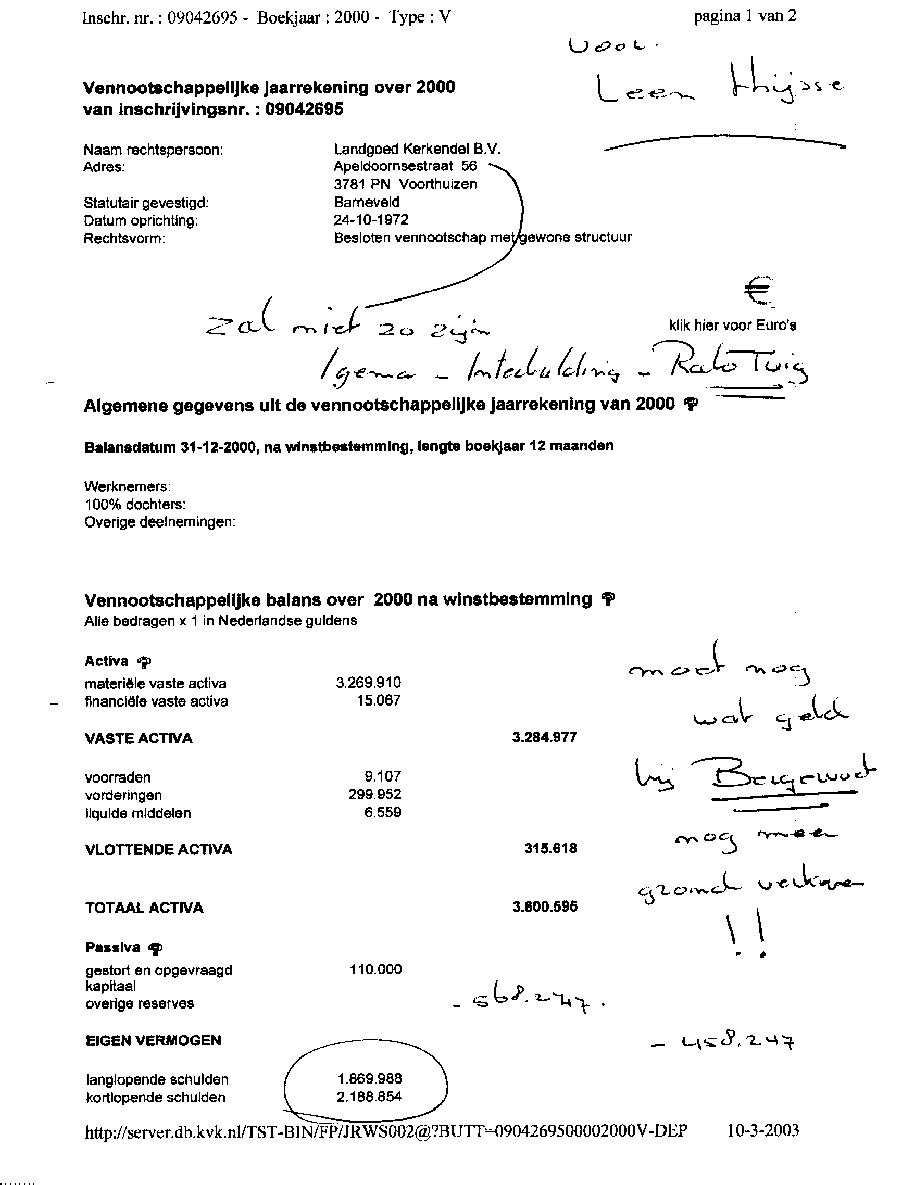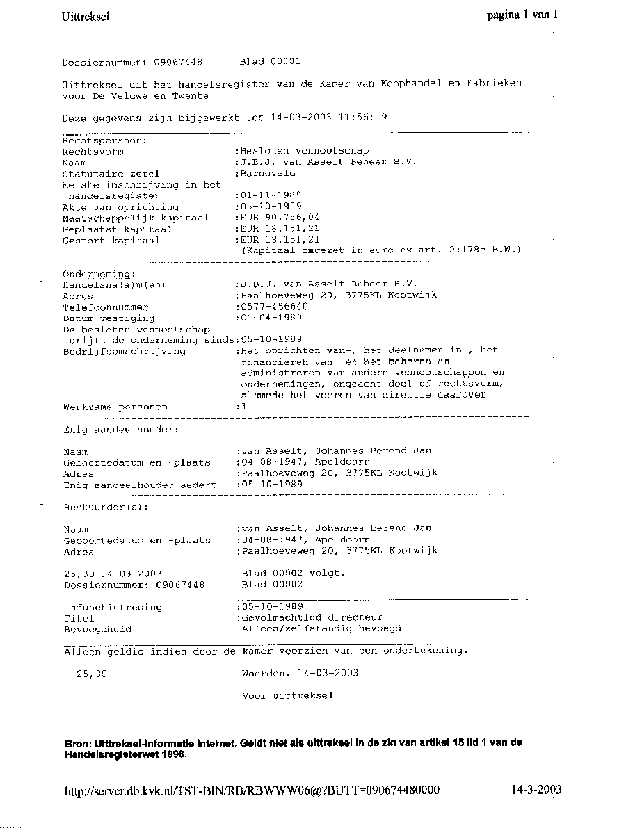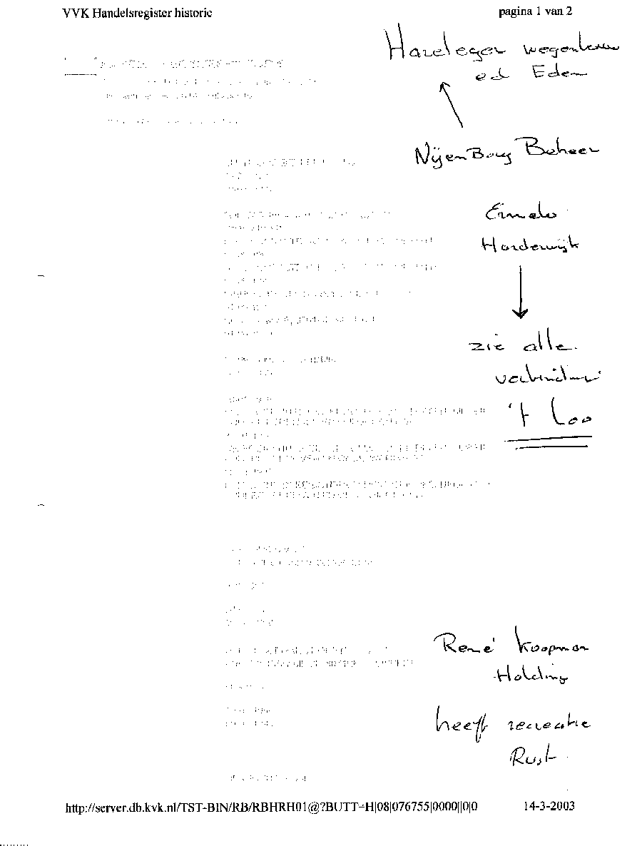 Kadastergegevens Kamer van Koophandel van conglomeraat van parken van Bergervoet sr.