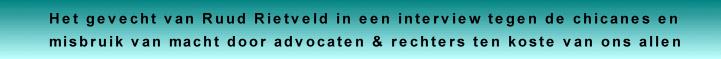 Andijk 30-07 2005. Geachte Heer Rietveld, Waarom schrijf ik u? Omdat ik veel herken in uw strijd tegen corruptie en zeer slecht functionerende ambtenaren; rechters en advocaten. De afgelopen jaren (en recent d.d. 23-07-05) las ik in het N.H.D. div. redactionele artikelen m.b.t. rechter A.L. Croes en gisteren een aantal brieven op uw site. Het ontbrak mij aan de tijd om eerder te reageren en u moreel wat te steunen in uw strijd. Uw energie en strijdkracht waardeer ik zeer, maar laat uw gezin en gezondheid niet slopen door mensen als Croes. Mijn ervaringen met Croes zijn in veel opzichten overeenkomstig met de van u en heb mijn ervaringen in een 150 pagina`s tellend manuscript weergegeven. Eind jaren 2003 beloofde uitgeverij Aspect uit Soesterberg mijn manuscript in boekvorm te gaan uitgeven, maar trok dit (in eerste instantie gekwalificeerd als een uniek boekwerk) weer in omdat zo luidde de kritiek van medefirmant Martin Ros het teveel een rapport is c.q. feitenmateriaal. In september 2003 heb ik mijn manuscript laten vermenigvuldigen en naar 15 instanties verzonden o.a minister Donner, politieschool, gemeenteambtenaren, rechtbanken, o.a Alkmaar en Leeuwarden, ombudscommissie voor gemeenteambtenaren, Kadaster, enz. De titel van mijn manuscript spreekt voor zich: 'Burenconflict als lot of kans' met als subtitel, 'hoe gemeenteambtenaren, politie en Justitie aanzetten tot geweld'. Ik had tot voor 1998 veel vertrouwen in politie en Justitie, maar nagenoeg geen ervaring opgedaan in die wereld. Inmiddels is mijn vertrouwen na 7 jaar ervaring bijna teruggereduceerd tot nul. Ik kan me dan ook totaal niet vinden in het feit dat het Nederlandse rechtssysteem als voorbeeld wordt gesteld in Europa en de rest van de wereld. Mijn kwalificatie zou zijn: de rechtsstructuur is mogelijk wel goed maar de personen als rechter Croes en velen met hem laten enorm te wensen over, vol van arrogantie, manipulatie, machtslust, ziende blind en horende doof en verre van rechtvaardig. Als mijnheer Croes als rechter altijd zo heeft gefunctioneerd, had hij nooit geen rechter mogen worden, omdat het in mijn ogen een diep gefrustreerde en zeer onzekere man is achter een façade van: denk er om, geen ongetogen woord naar mij toe want ik heb de macht en ik pak je terug aangezien ik je kan maken en breken. Ongekende manipulerende soloacties en in de hoorzitting zelfs zonder griffier. Op 18 oktober 2001 velde Croes zijn eindvonnis (slechts 2 jaar en 4 maanden na de hoorzitting) in een rechtszaak die ik had aangespannen vanwege het jarenlange vernielgedrag en zijn uitgeleefde geestelijke terreur van mijn buurman met een psychopathische karakterstructuur. In het hogerberoep op d.d. 27-11 2003 werd het vonnis van Croes nagenoeg geheel verworpen. M.a.w. Croes heeft zijn werk op basis van de feiten niet goed gedaan. Er is geen instantie naast onze overheid/rechtspraak die zo onbeschoft is om te erkennen dat medewerker Croes zeer slecht werk heeft afgeleverd en vervolgens mij de aanklager met het aangaan van het H.B. om dit te bewijzen, alle extra gemaakte advocaten- en procureurskosten gewoon laat betalen. Dit nog los van de jarenlange extra spanning, onzekerheid en gevoelens van in mijn waardigheid te zijn geschaad. Ik noem dit geestelijke terreur met niet zelden een verwoest leven met de dood tot gevolg. Sterker nog: b.v. de Italiaanse maffia doet het een stuk menselijker en voorkomt dit soort jarenlange Middeleeuwse geestelijke martelpraktijken. Ze schieten je direct kapot als je buiten hun regels handelt. Als elke rechter 1% gekort zou worden als zijn gevelde vonnis in het hogerberoep voor meer dan 50% verworpen wordt, dan had Croes allang al geld mee moeten nemen om zijn frustraties via de rechtspraak te kunnen uitleven. Mijn vrij jonge advocate vertelde mij al voor de hoorzitting dat wij het met de toewijzing van rechter A.L. Croes niet slechter hadden kunnen treffen en dat zijn 'rechtspraak' veel wordt gebruikt in toneelstukjes en cabaret binnen de advocatenverenigingen. Mijnheer Rietveld, veel van bovenstaande kwalificaties en ervaringen gaan voor mij ook op voor de tuchtrechters voor advocaten. Er moet wel heel lang en veel mis gaan wil een advocaat een schorsing krijgen. Mijnheer A.F.R. Avis, advocaat te Hoorn was de advocaat van mijn buurman en is door zijn tuchtcommissie eerst drie maanden geschorst en later hing hem een schorsing van 1 jaar boven het hoofd en besloot toen onder druk zijn praktijk te sluiten. Dit leidde tot verkoop bij executie op 12 juni 2001 van zowel zijn praktijk als privé-goederen. Uiteindelijk een beetje gerechtigheid na het produceren van zoveel ellende naar zijn cliënten en de tegenpartijen die de dupe zijn geworden van zoveel onzuiver advocatengedrag. Een andere naam die ik U niet wil onthouden is advocaat Chris Veraart, praktijkhoudend te Alkmaar en woonachtig in Bergen. Deze advocaat met de ziekte M.S. voelt zich zo superieur en specialist in valse aangiftes rond zedenzaken dat hij geen rechtsgang nodig heeft mij en collega`s publiekelijk via de media te beschuldigen en te veroordelen op grond van geen enkel feit. In een jarenlang tuchtraadproces tot in het Hof van Discipline is Veraart op al zijn beschuldigingen onderuit gehaald en door het Hof veroordeeld. De man blijft nog spartelen en probeert nu via het European Court of Human Rights te Strasbourg alsnog zijn veroordeling ongedaan te maken. Ook dit hele rechtsverloop is een boekwerk waard en het zal nog wel een paar jaar duren. We gaan allebei op onze eigen manier met ervaringen van onrecht om. Het is slechts een schrale troost dat niet iedereen het er bij laat zitten. Ik wens U veel sterkte en wijsheid toe en mogelijk kan een gesprek of brief per e-mail aanvullend c.q. ondersteunend zijn naar elkaar toe. Met vriendelijke groet, Peter Kieft.