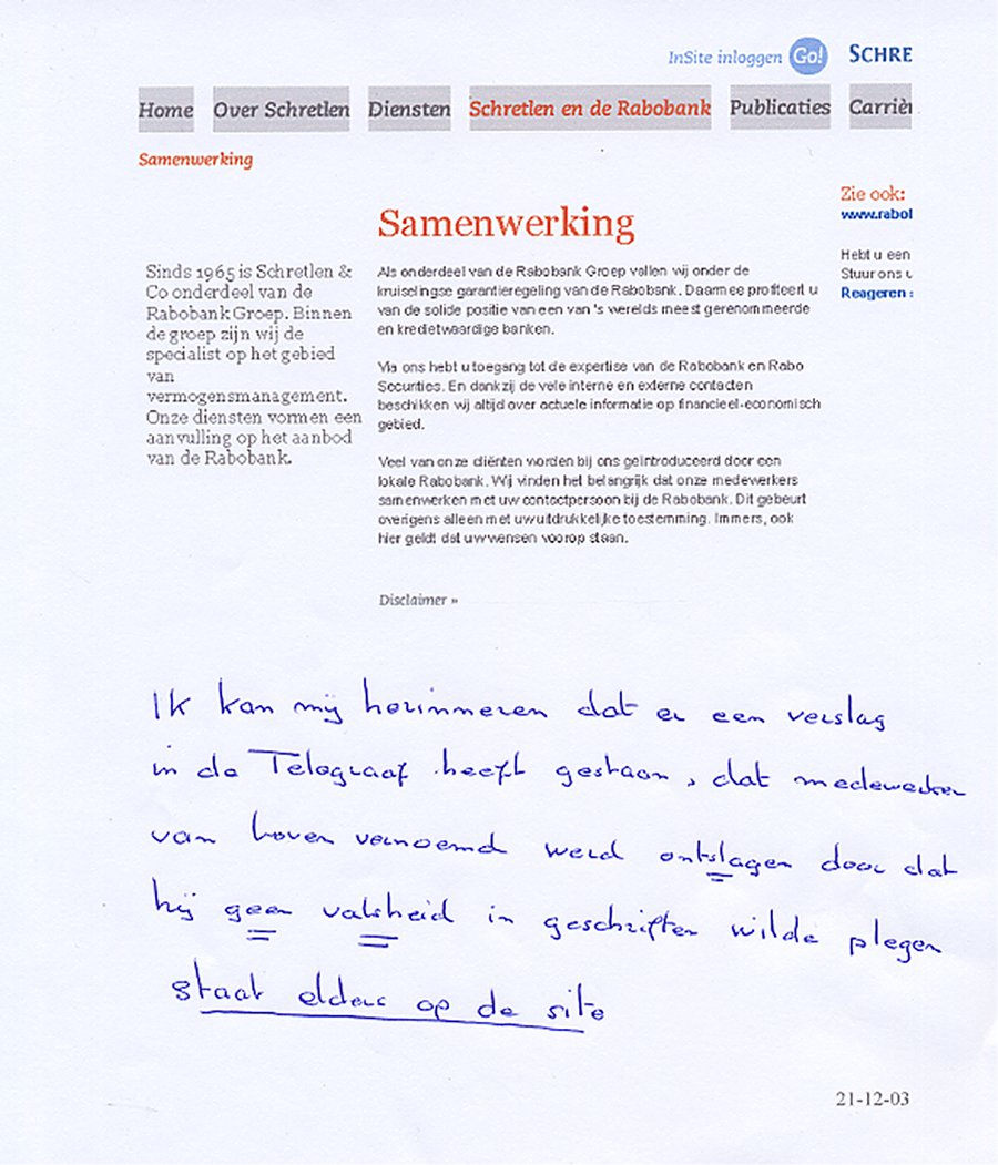 Overzicht van publicaties in de Telegraaf over financiële schandalen bij de Rabobank