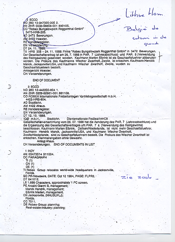 Kadastergegevens Kamer van Koophandel van conglomeraat van parken van Bergervoet sr.