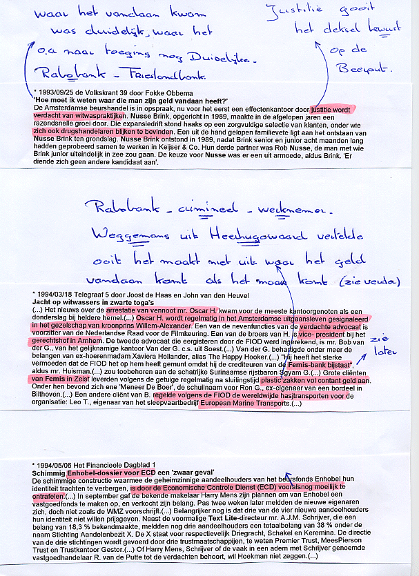 Overzicht van publicaties in de Telegraaf over financiële schandalen bij de Rabobank
