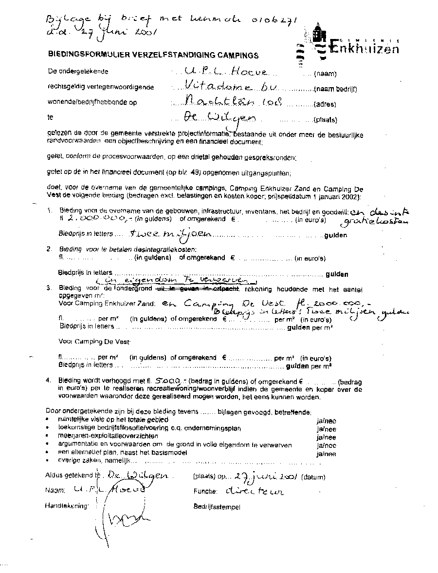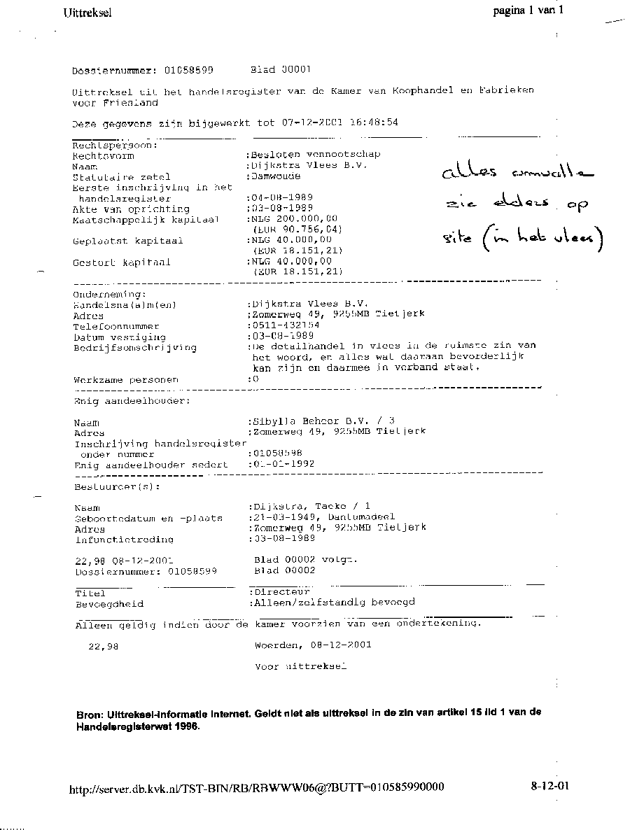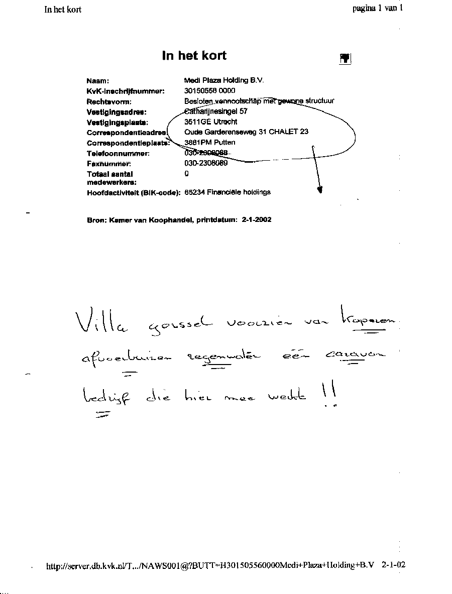 Kadastergegevens Kamer van Koophandel van conglomeraat van parken van Bergervoet sr.