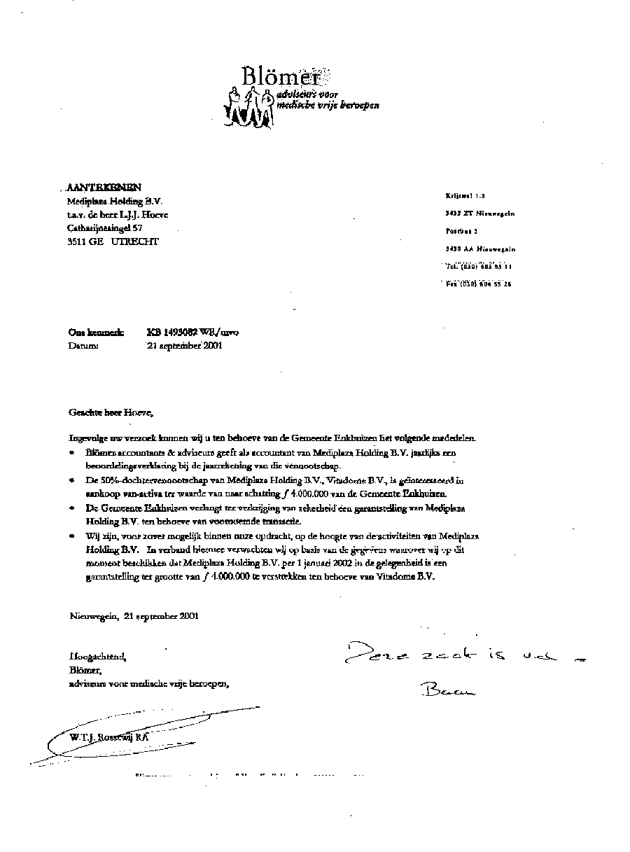 Document met procedure tegen mr. Maes van Dommerholt & van Dijk in Zwolle