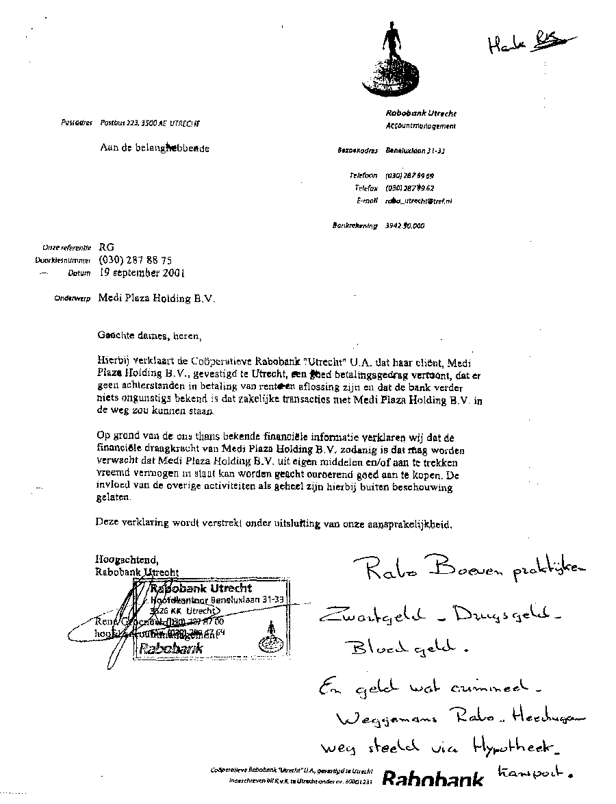 Bewijs van verstrengeling van de Rabobank met de beleggers in de recreatieparken
