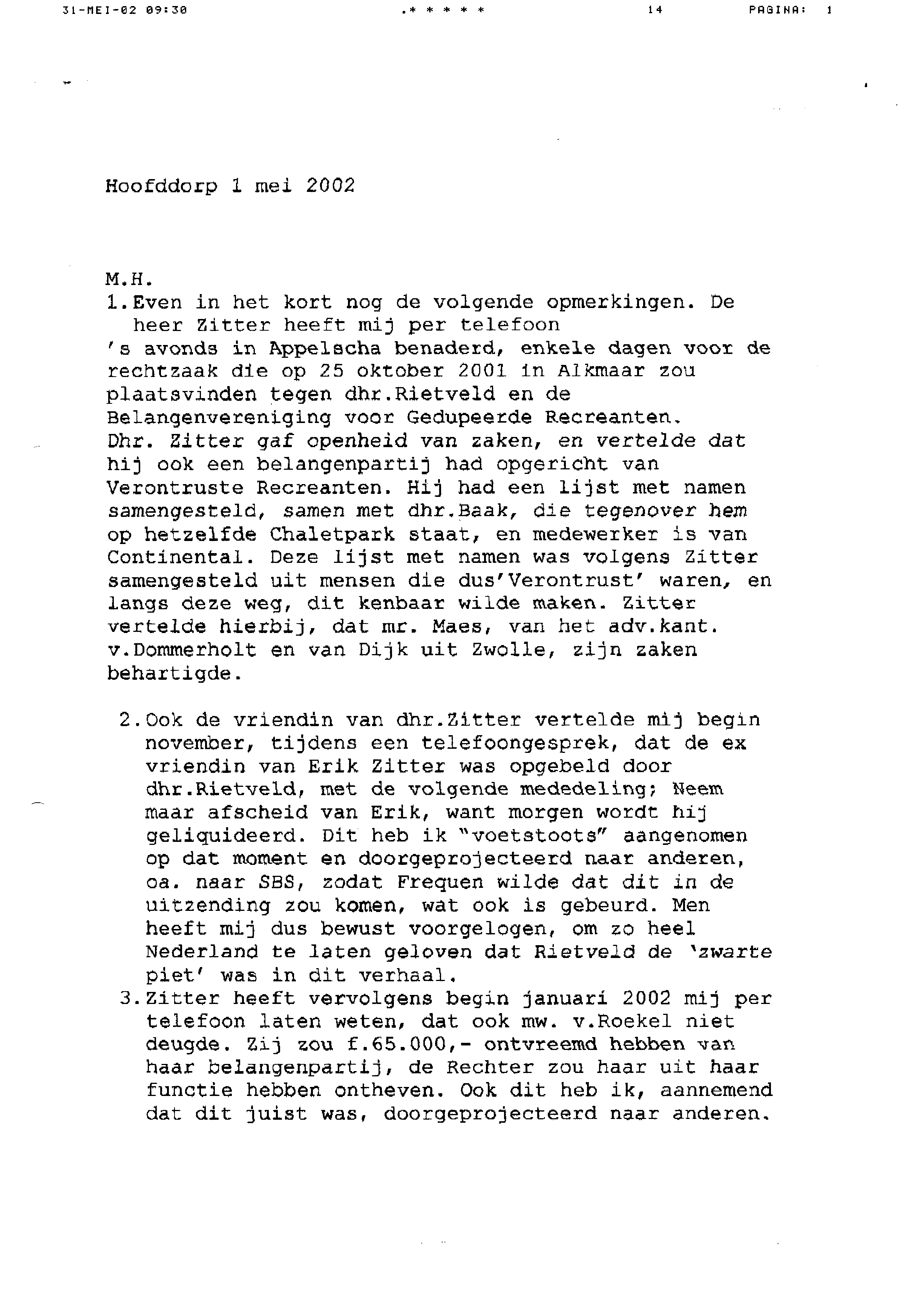 Nadat wij even van gedachten gewisseld hebben over de insteek van het verhaal van dhr. Rietveld, zal ik trachten op een duidelijke wijze datgene naar voren te brengen wat van toepassing is op de enorme beerput die er thans in Nederland bestaat. Hierbij denk ik aan de tekst van John Schaar, zoals deze staat vermeld in Nostradamus: "De toekomst is niet een plek waar wij naar toe gaan, maar een plek die we creëren. Paden worden niet gevonden maar aangelegd, en het aanleggen ervan verandert zowel de maker als de bestemming."