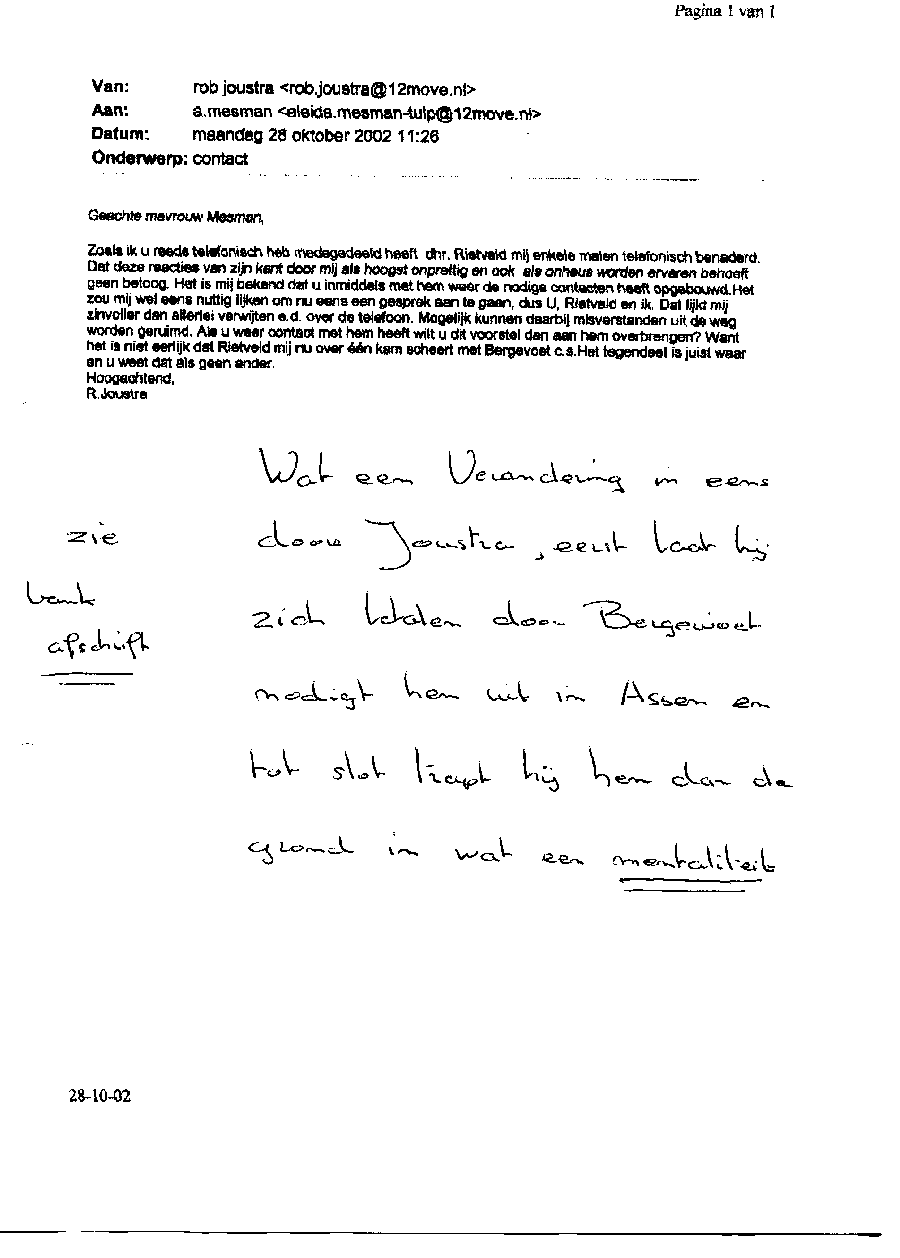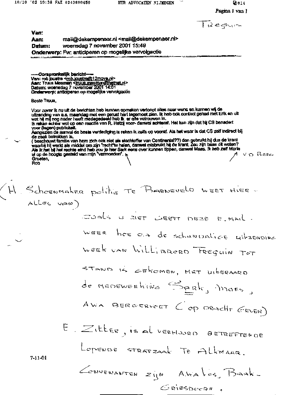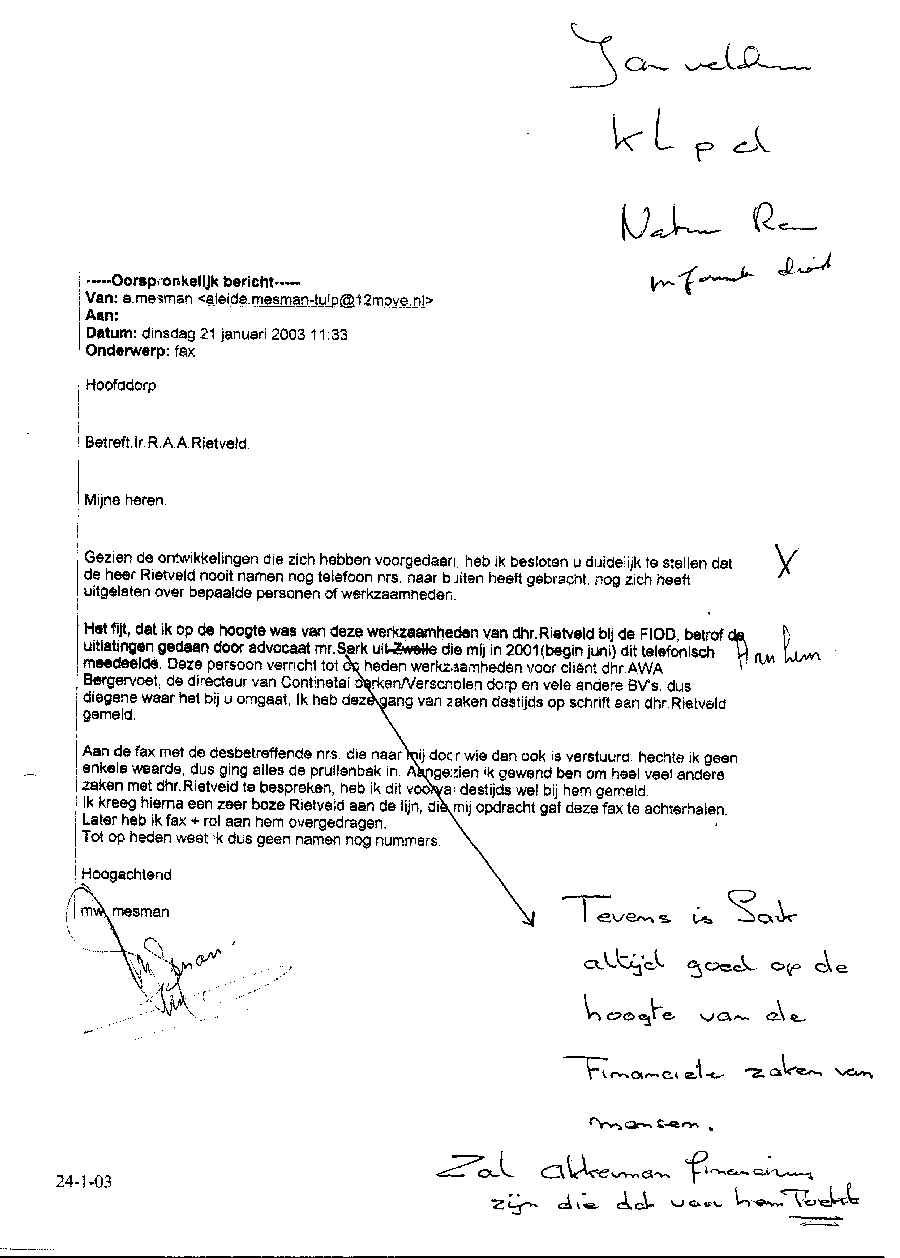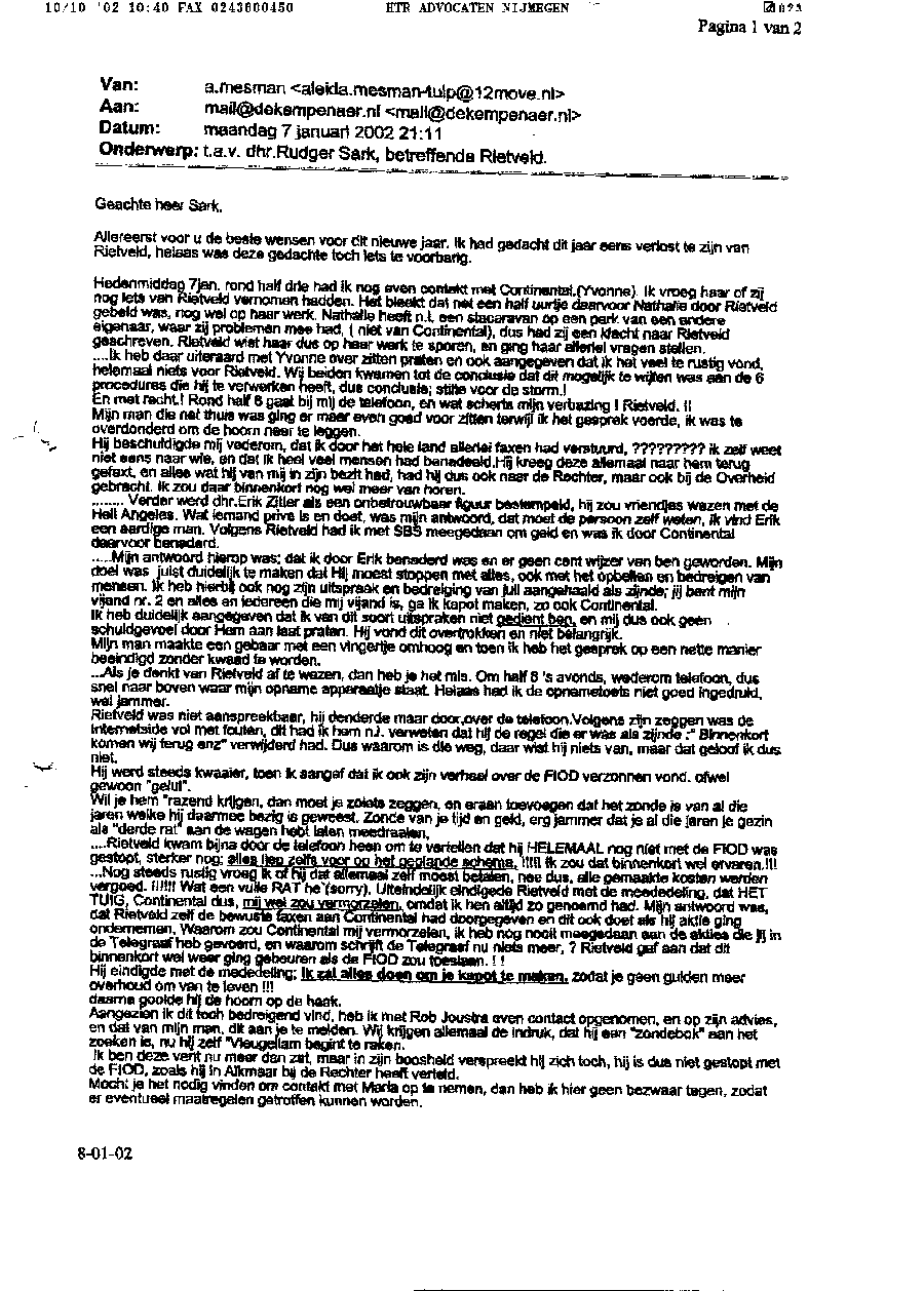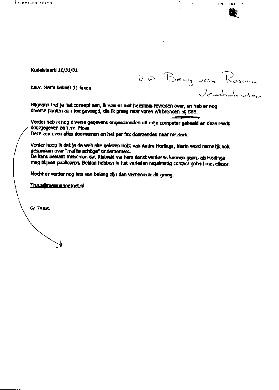 Faxbericht aan mr. Maes van Kees Griesdoorn over schijneisers