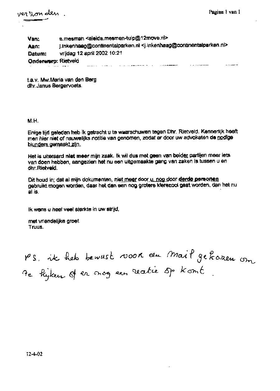 Een serie losse aantijgingen tegen mij (Rietveld) wegens onjuiste, vermeende kwalijke zaken