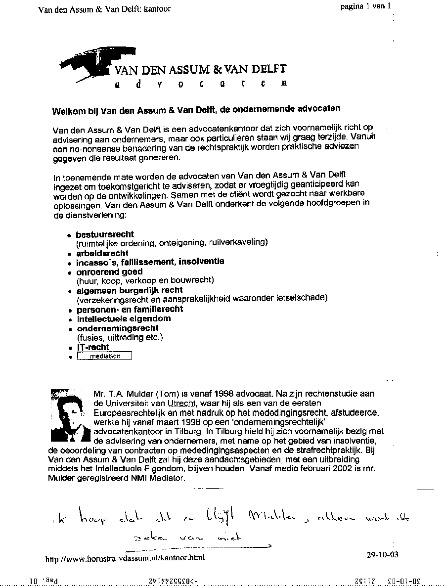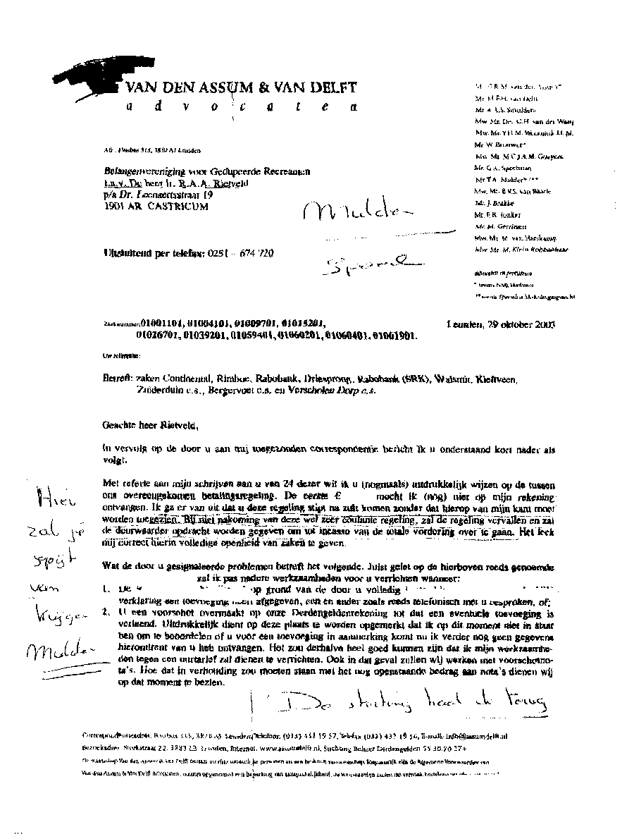 Document met procedure tegen mr. Maes van Dommerholt & van Dijk in Zwolle