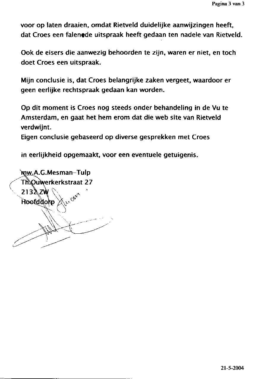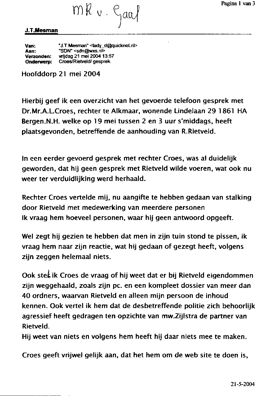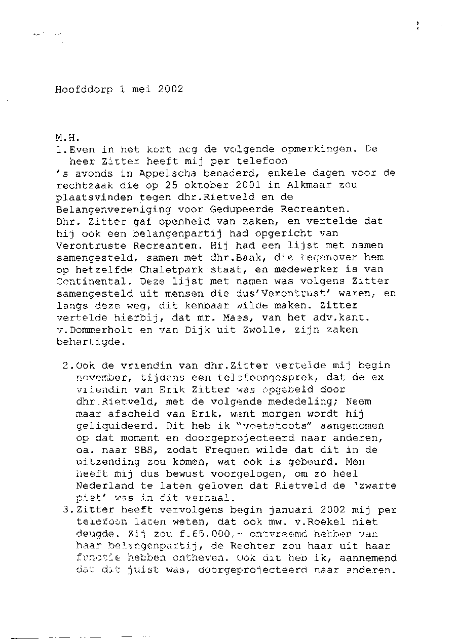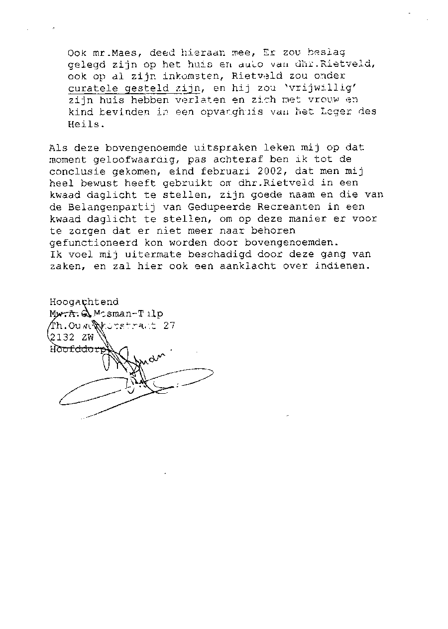 Een serie losse aantijgingen tegen mij (Rietveld) wegens onjuiste, vermeende kwalijke zaken