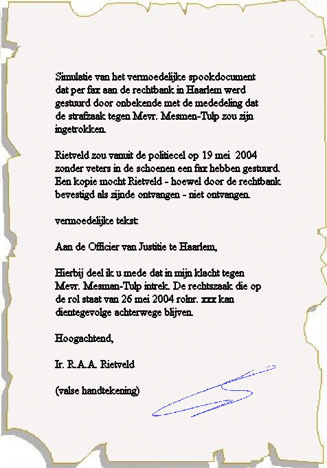 Faxbericht aan mr. Maes van Kees Griesdoorn over schijneisers