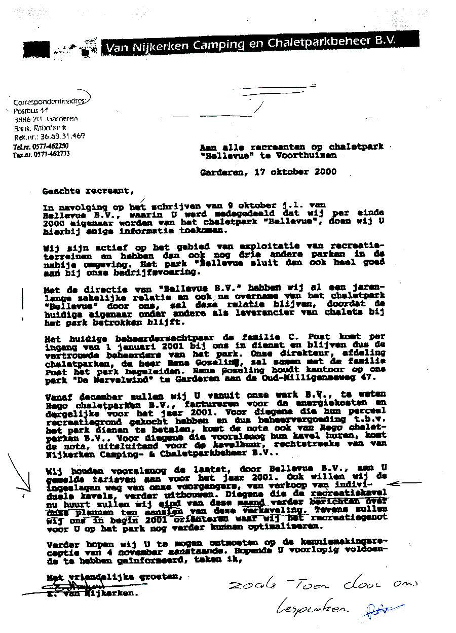 Voorlopige conclusie van Rietveld aan de recreanten en semi-permanente bewoners