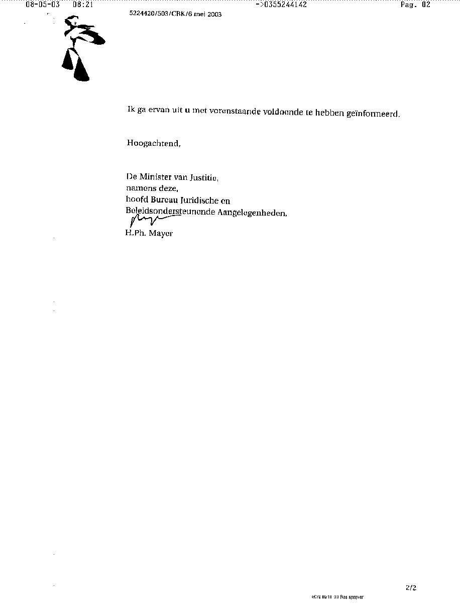 Faxbericht aan mr. Maes van Kees Griesdoorn over schijneisers