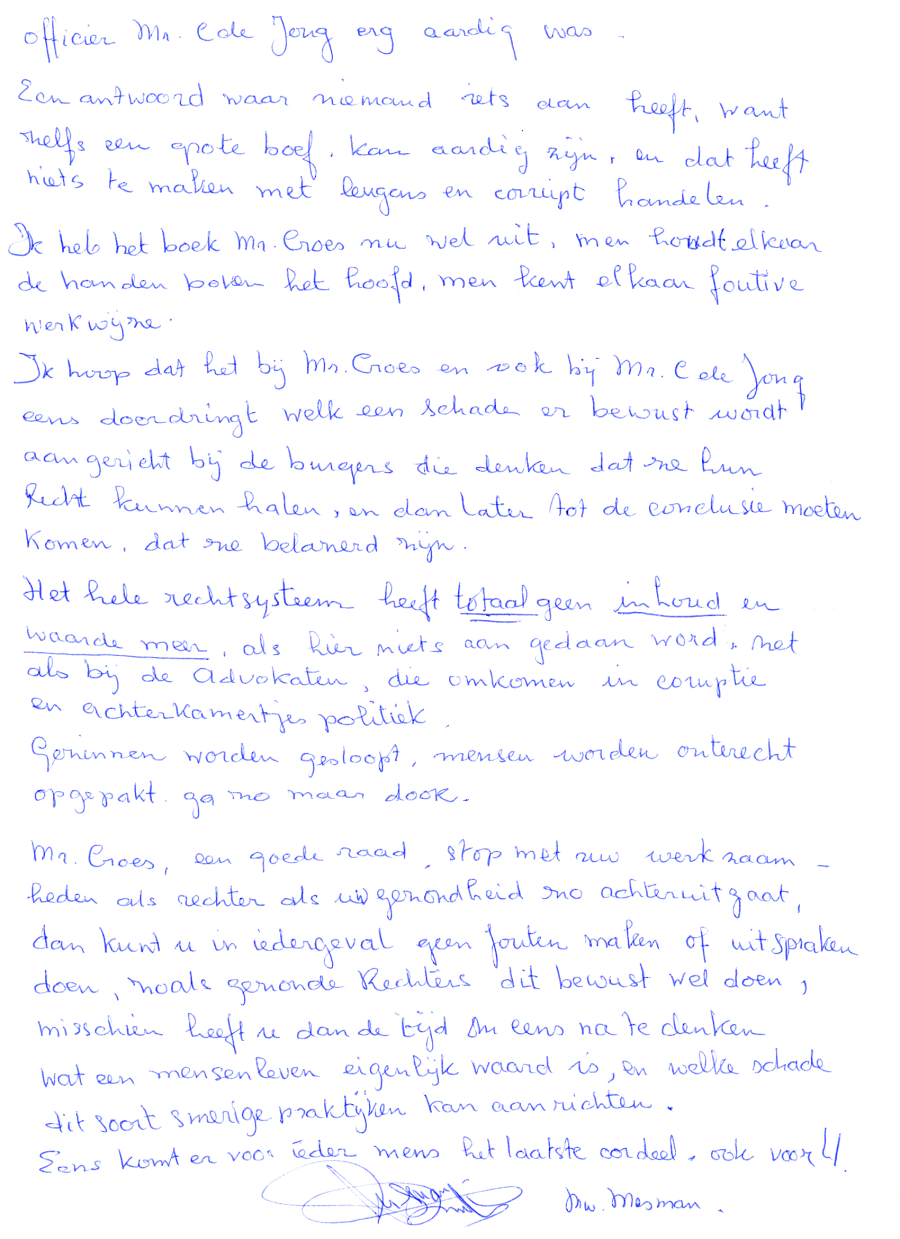 Zie ook mijn brief aan Rechtbank-president Mr. L.J.L. Koster en de