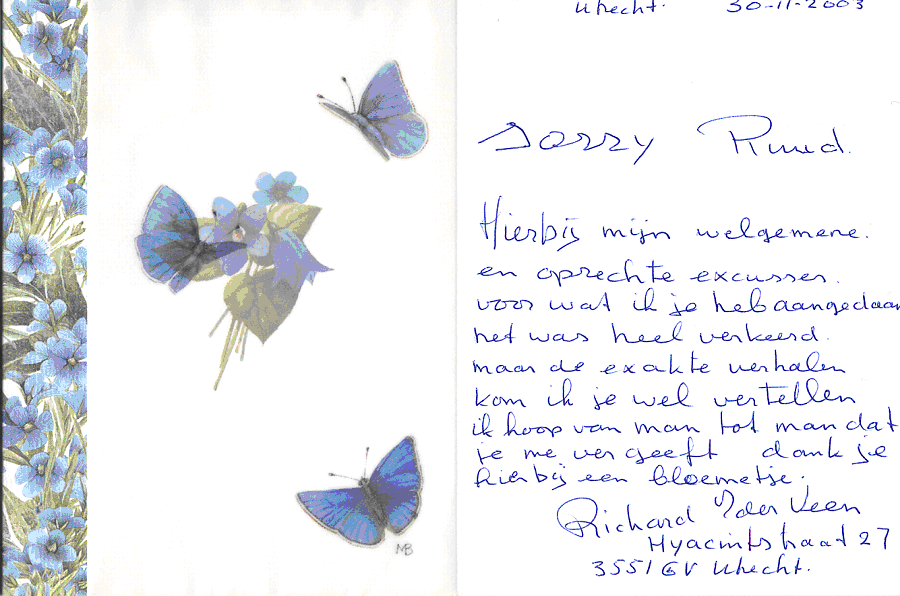 Het excuus over het meewerken aan de beschadigng van Ruud