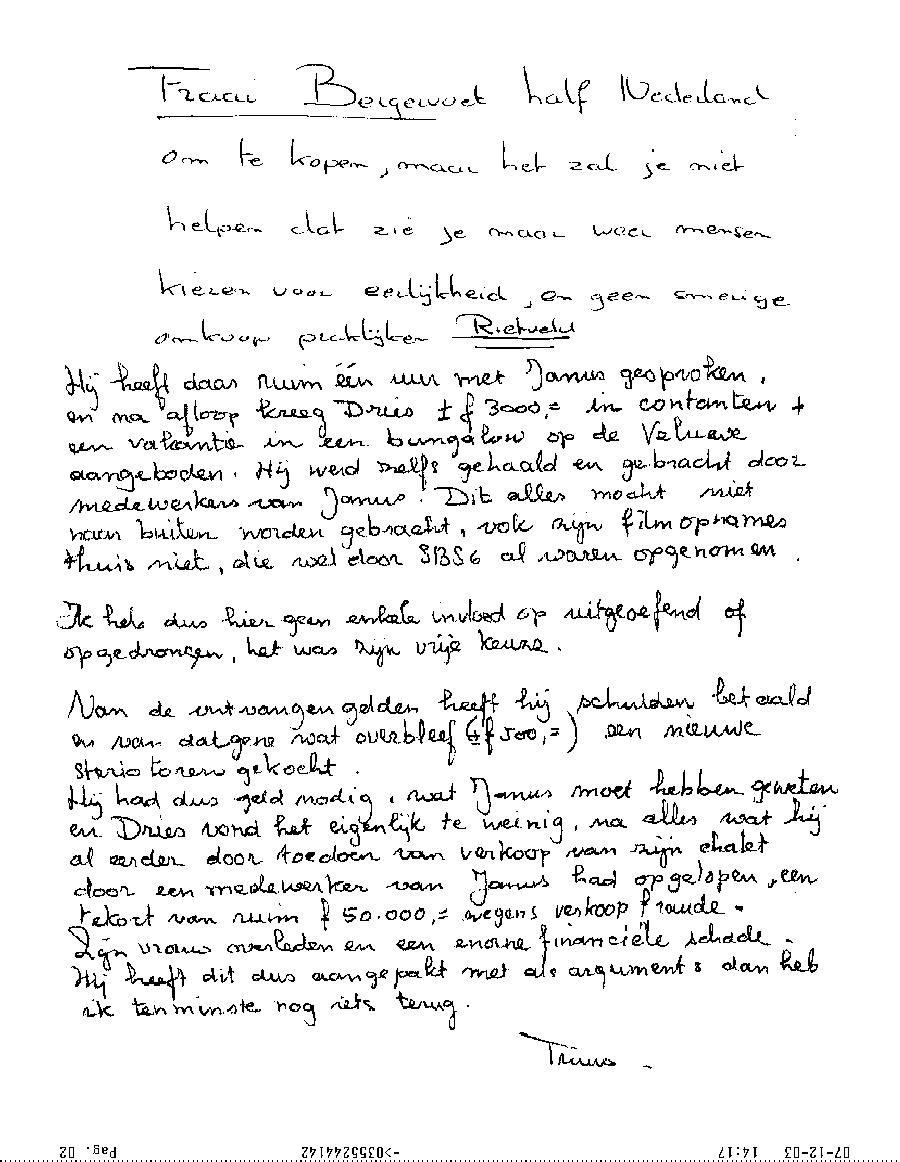 Faxbericht aan mr. Maes van Kees Griesdoorn over schijneisers