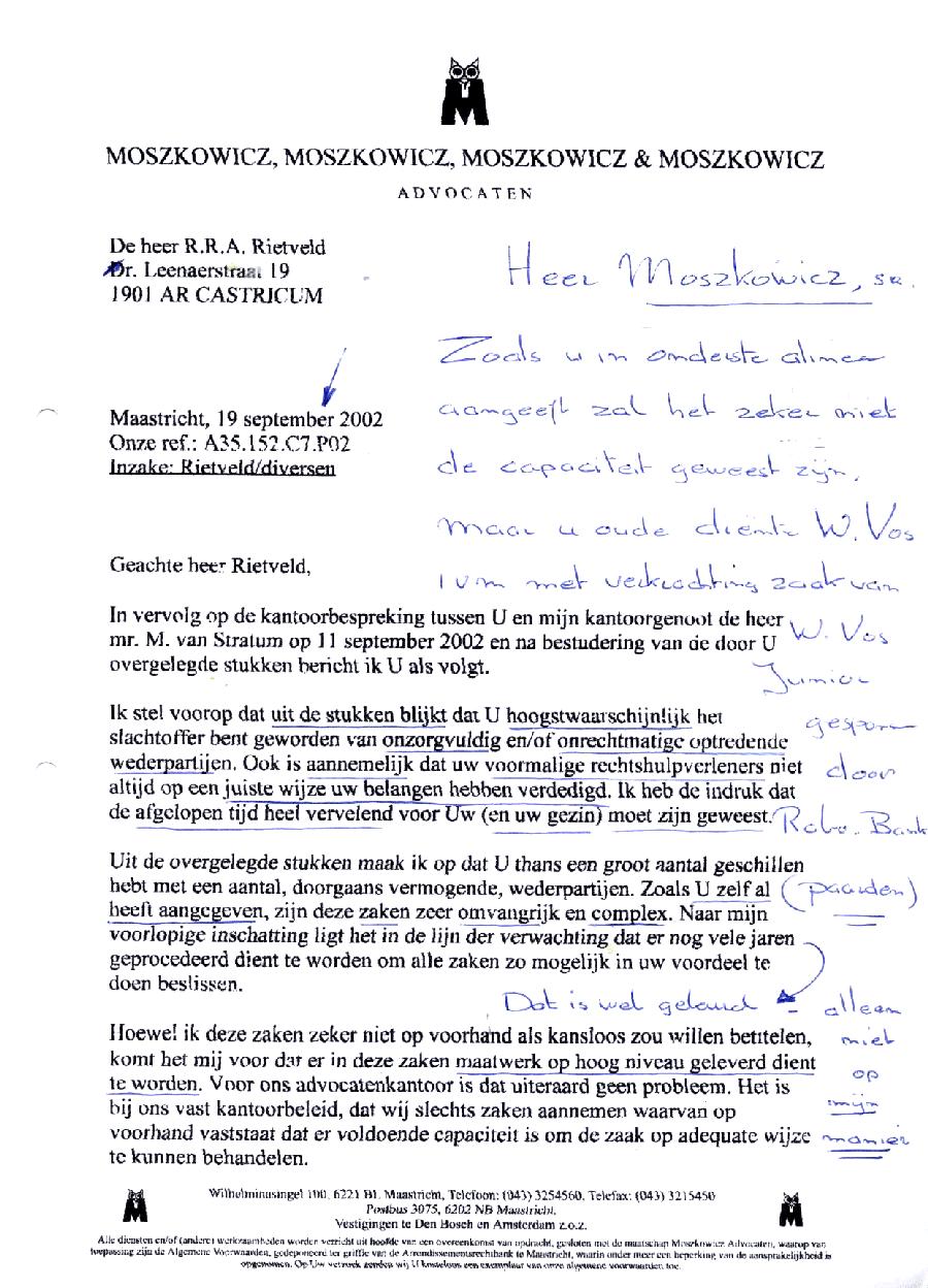 Document met procedure tegen mr. Maes van Dommerholt & van Dijk in Zwolle