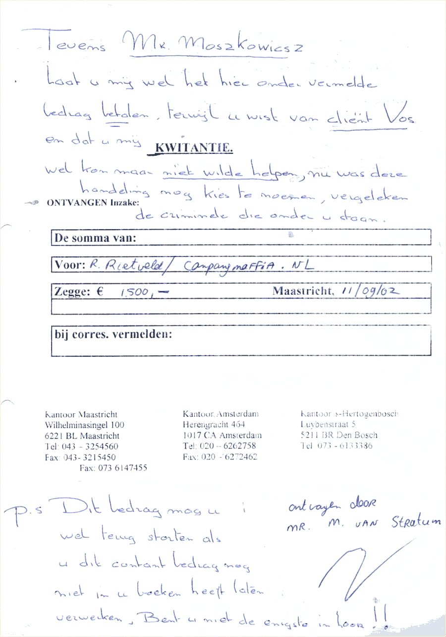 Faxbericht aan mr. Maes van Kees Griesdoorn over schijneisers