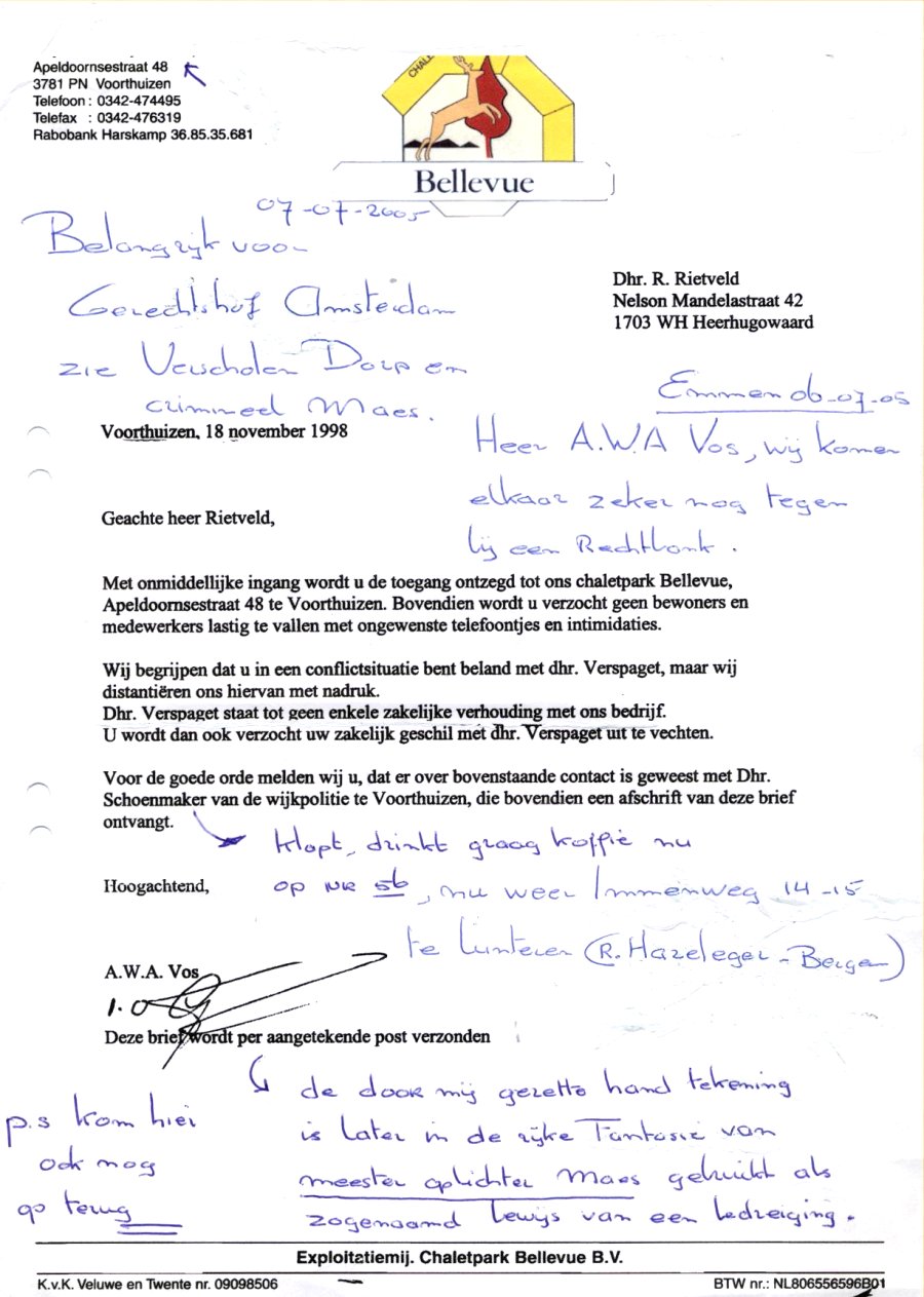 Brief aan SDN met de sommatie om de website van Rietveld te verwijderen
