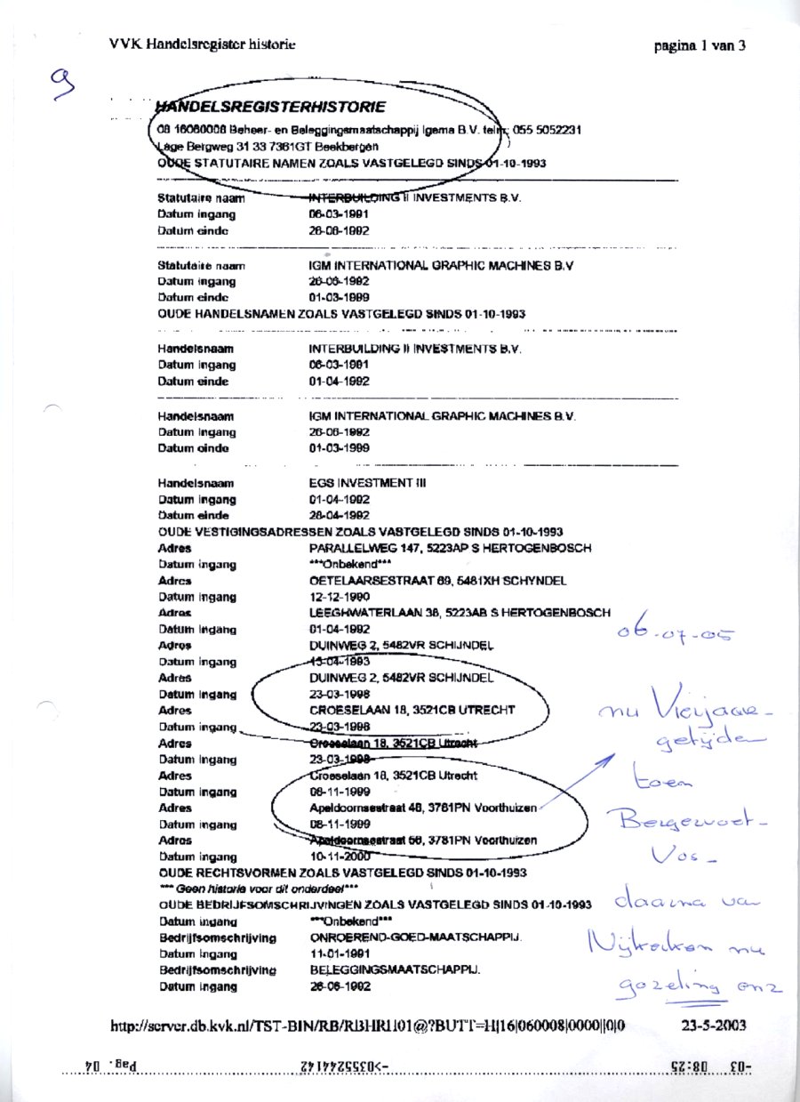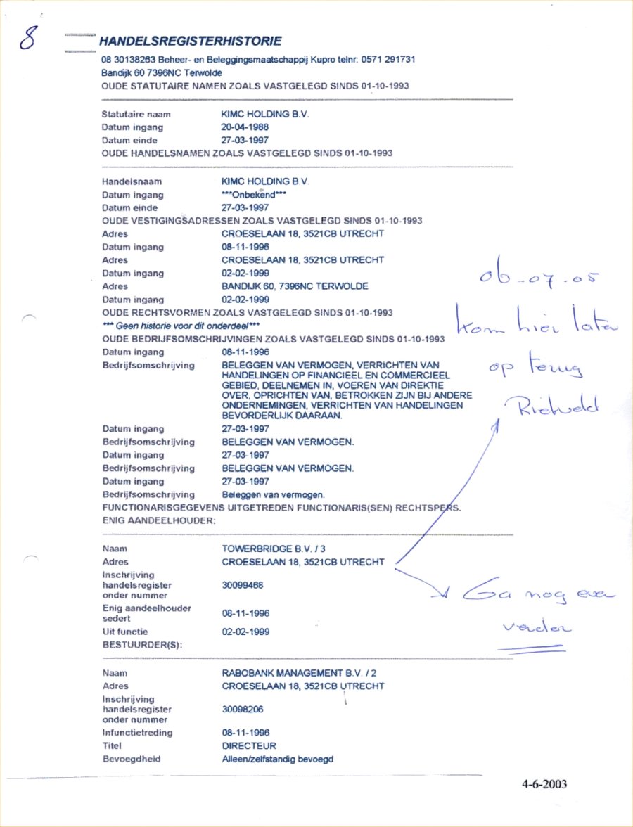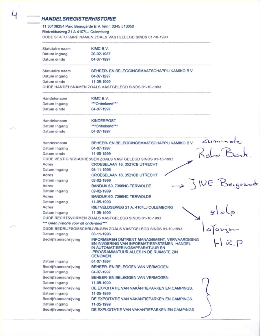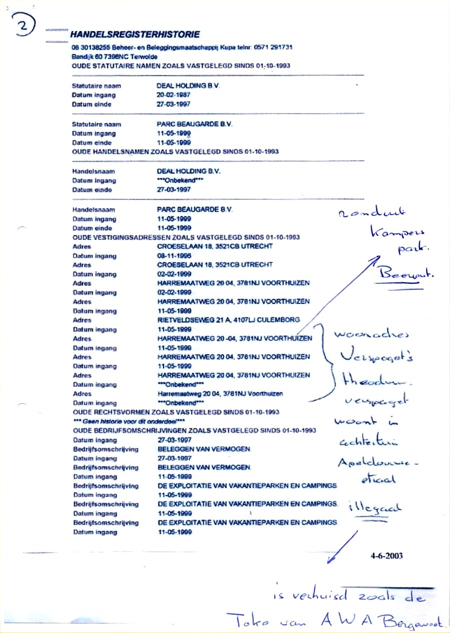 Achtergrond over de handelsregisterhistorie van Aegon Recreatie BV