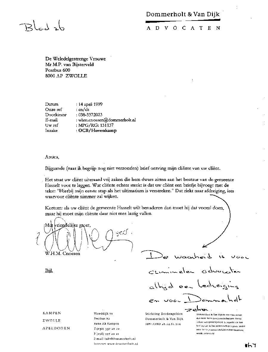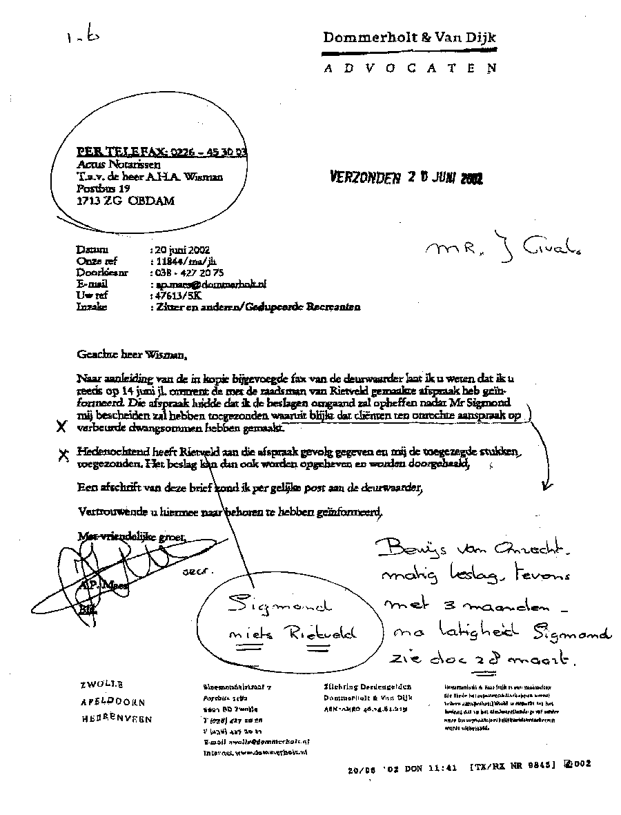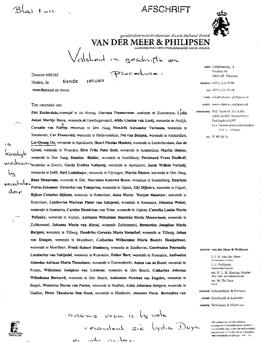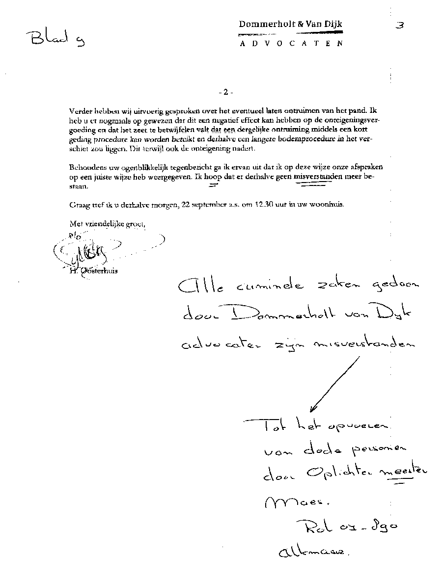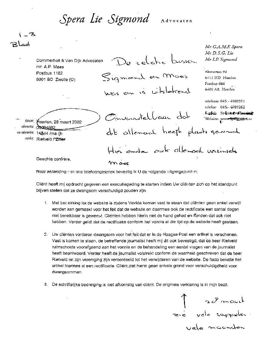 Document met procedure tegen mr. Maes van Dommerholt & van Dijk in Zwolle