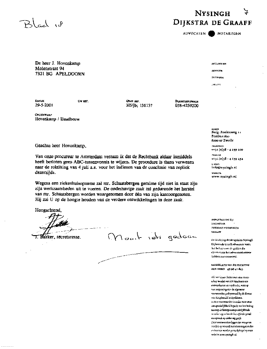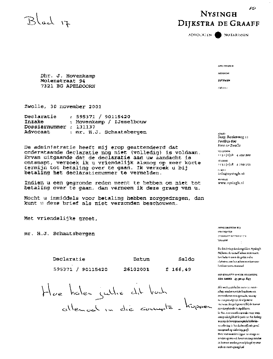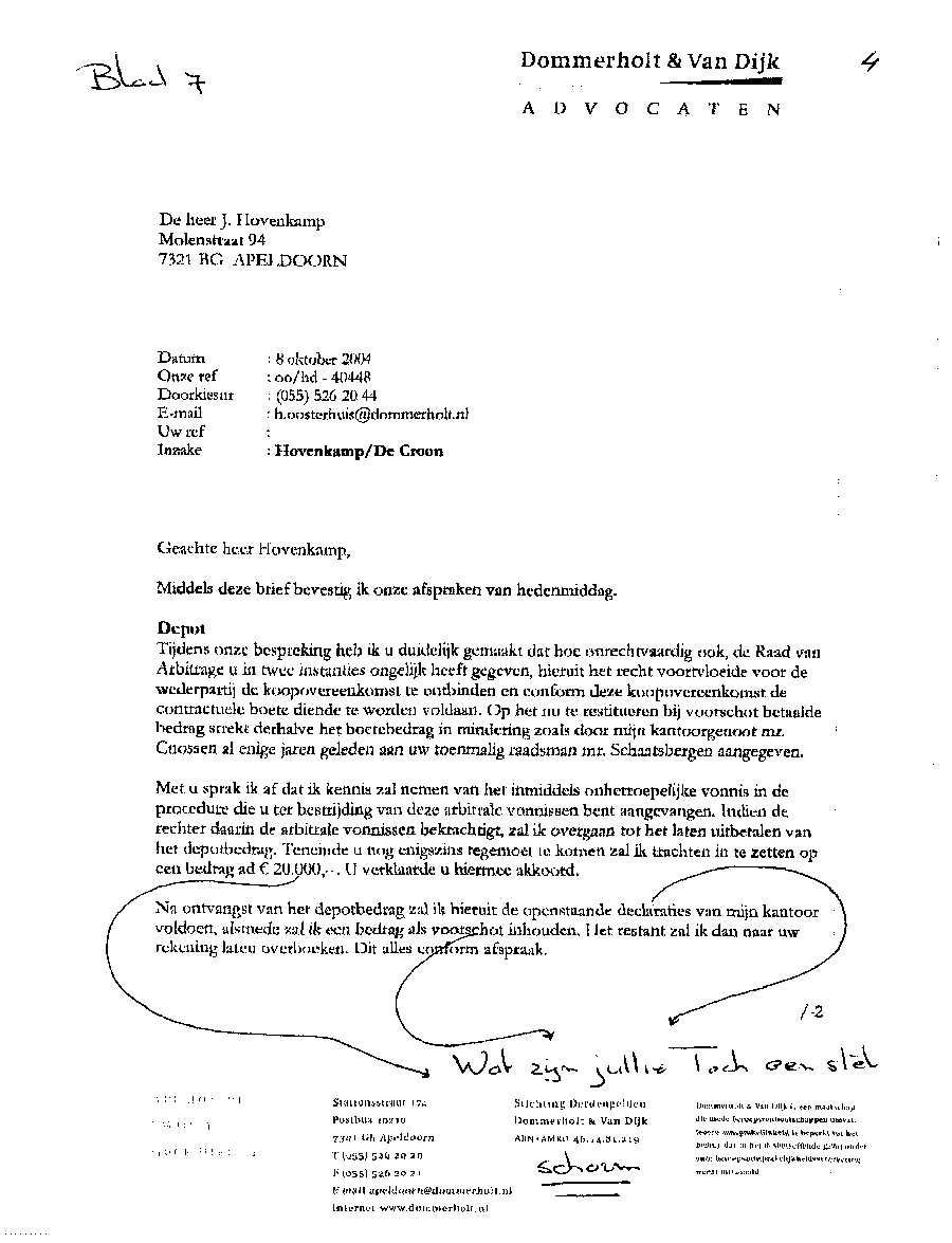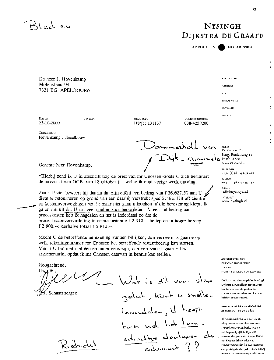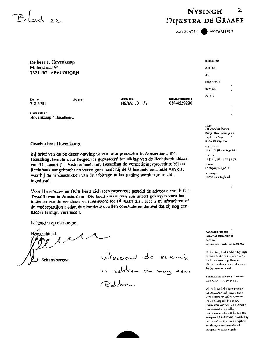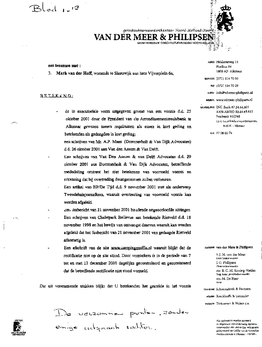 Document met procedure tegen mr. Maes van Dommerholt & van Dijk in Zwolle