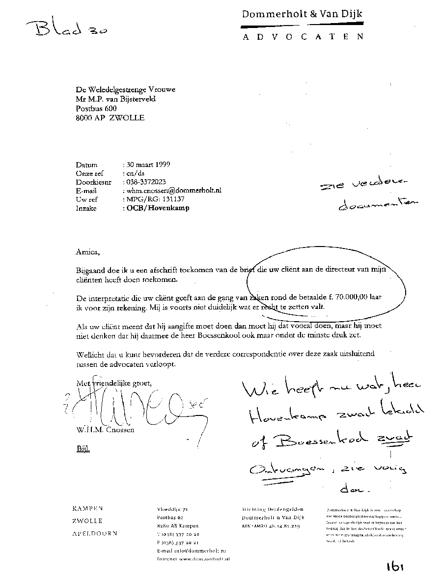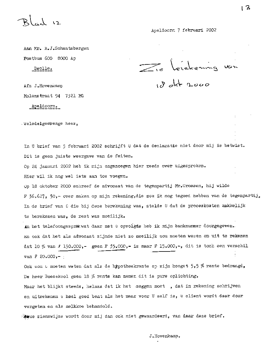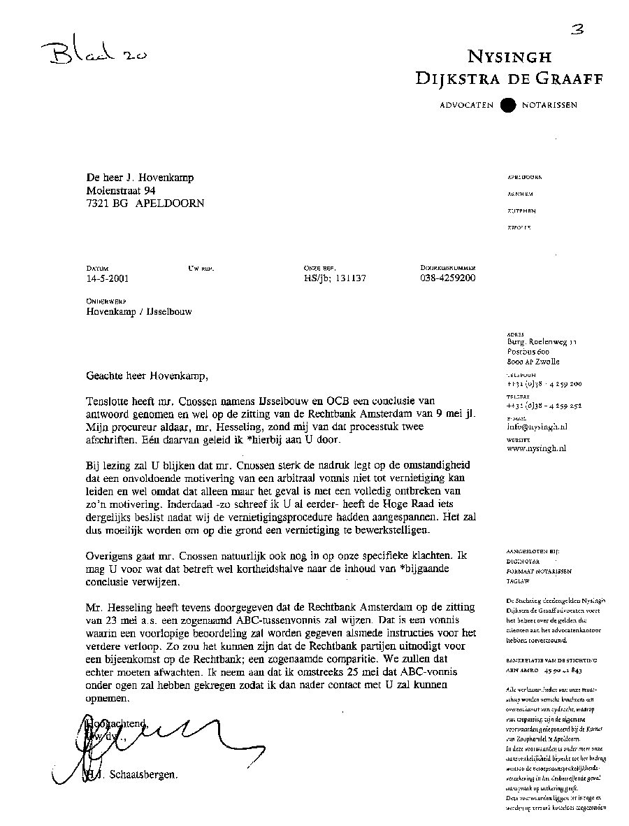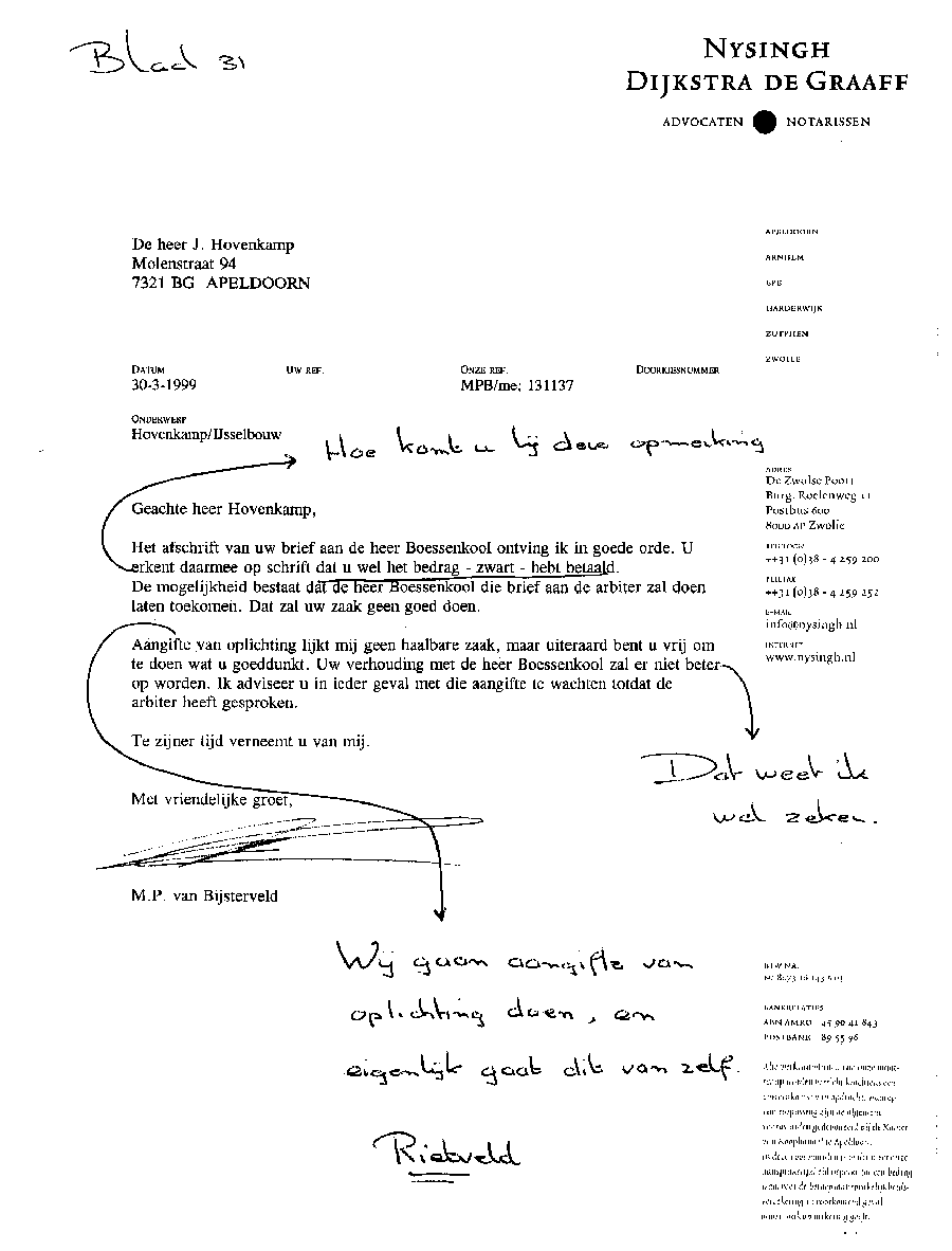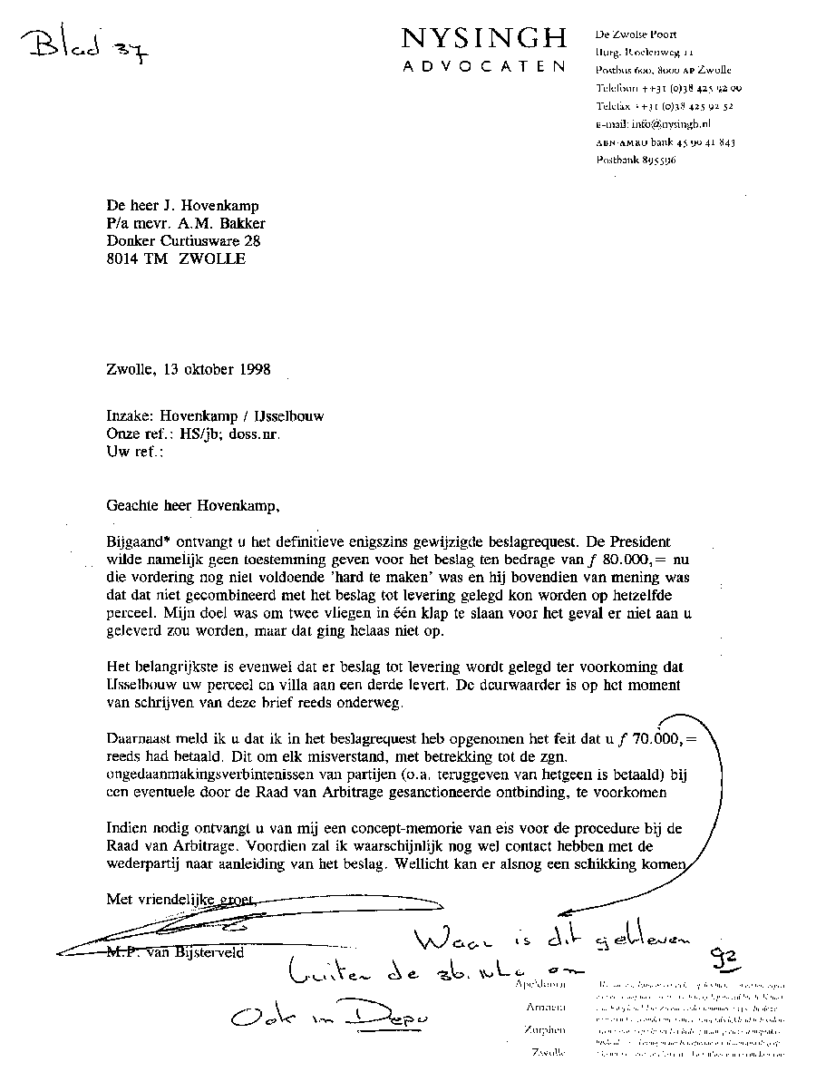 Document met procedure tegen mr. Maes van Dommerholt & van Dijk in Zwolle