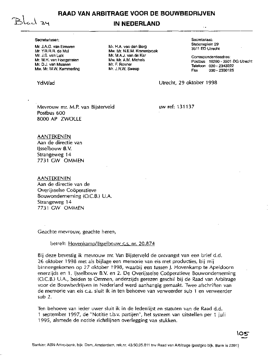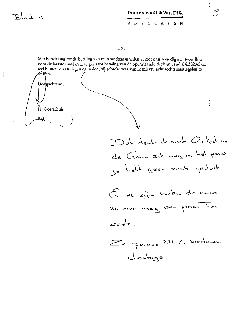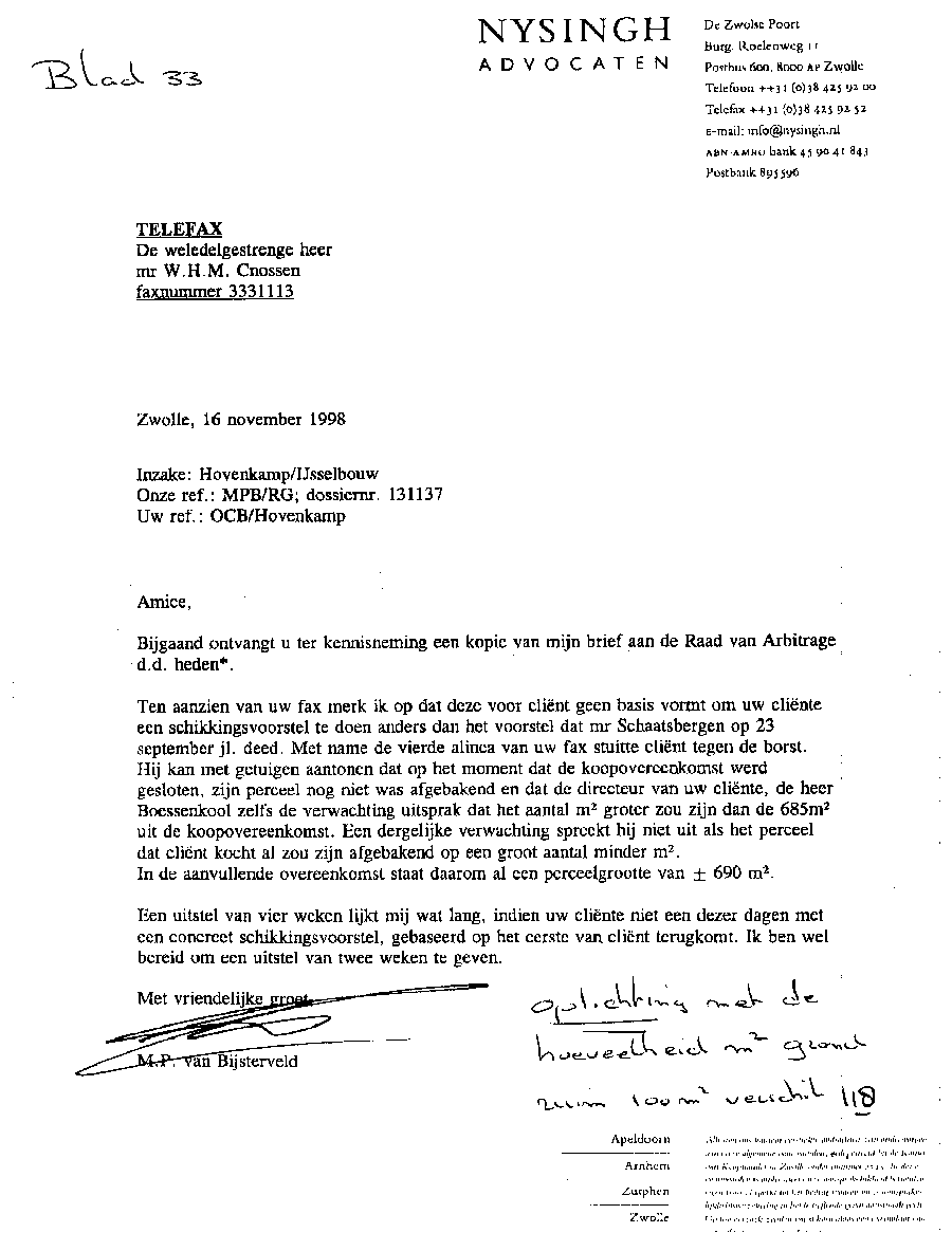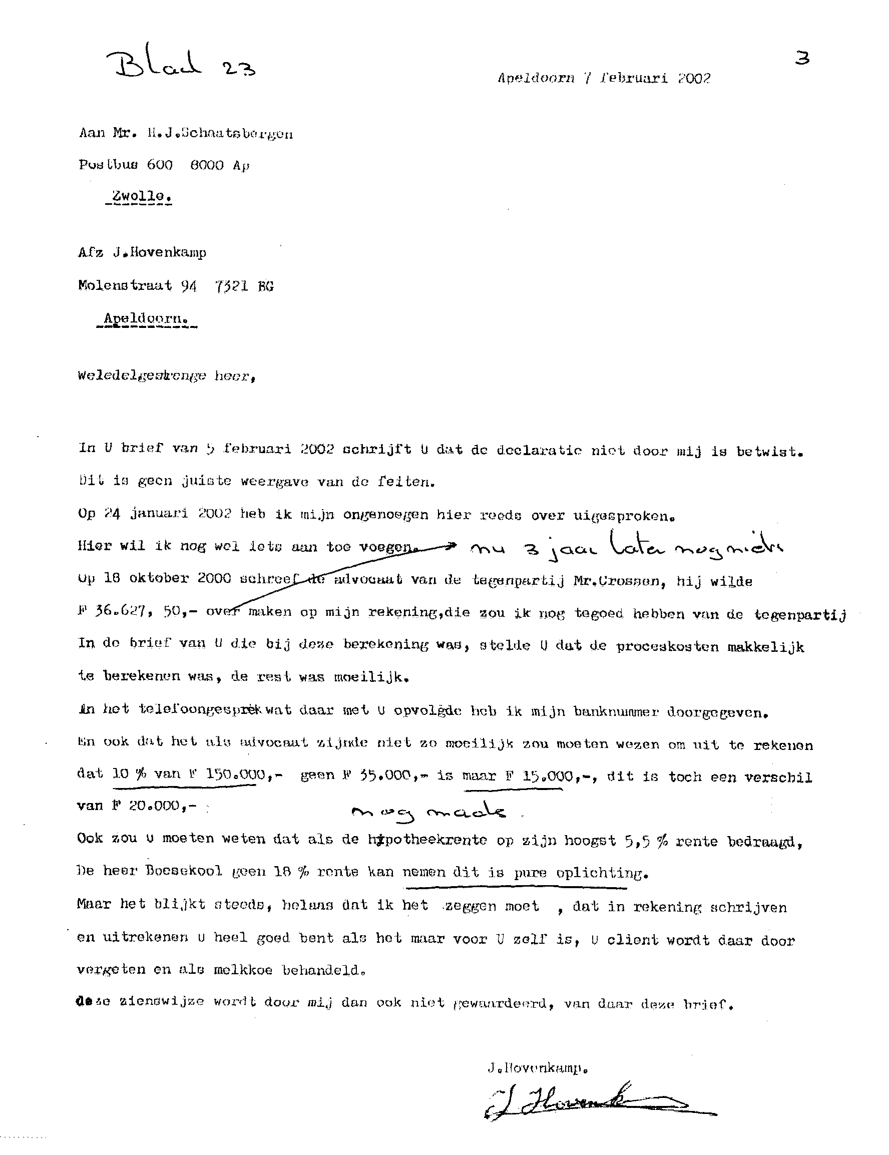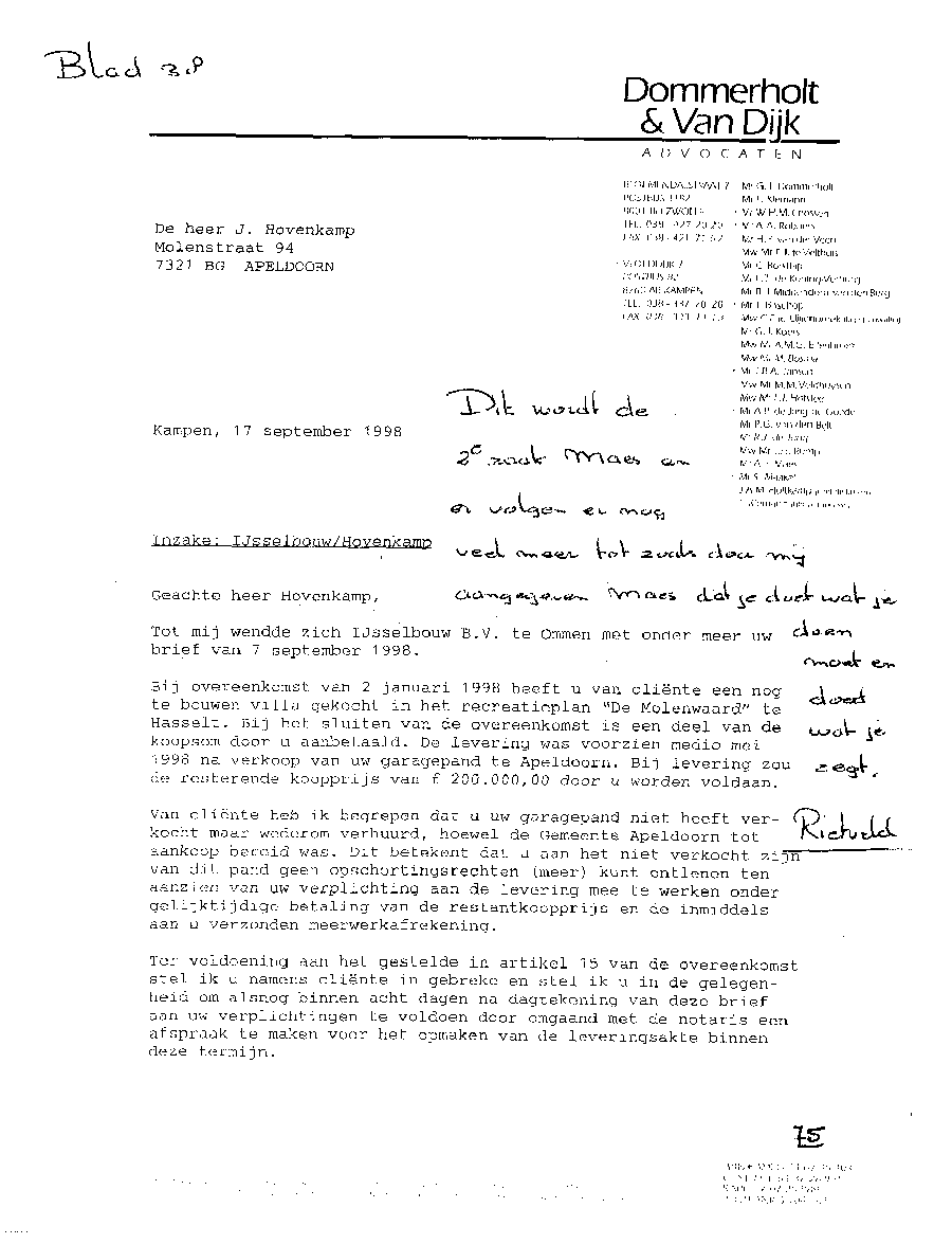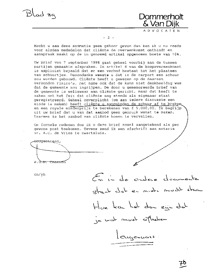 Document met procedure tegen mr. Maes van Dommerholt & van Dijk in Zwolle