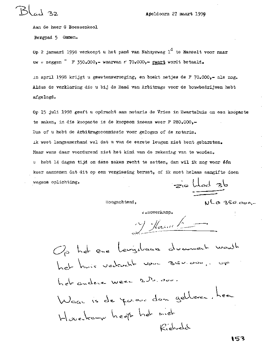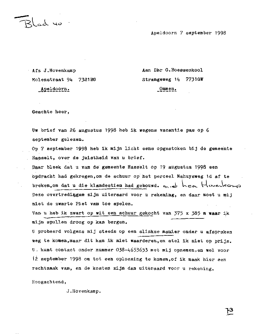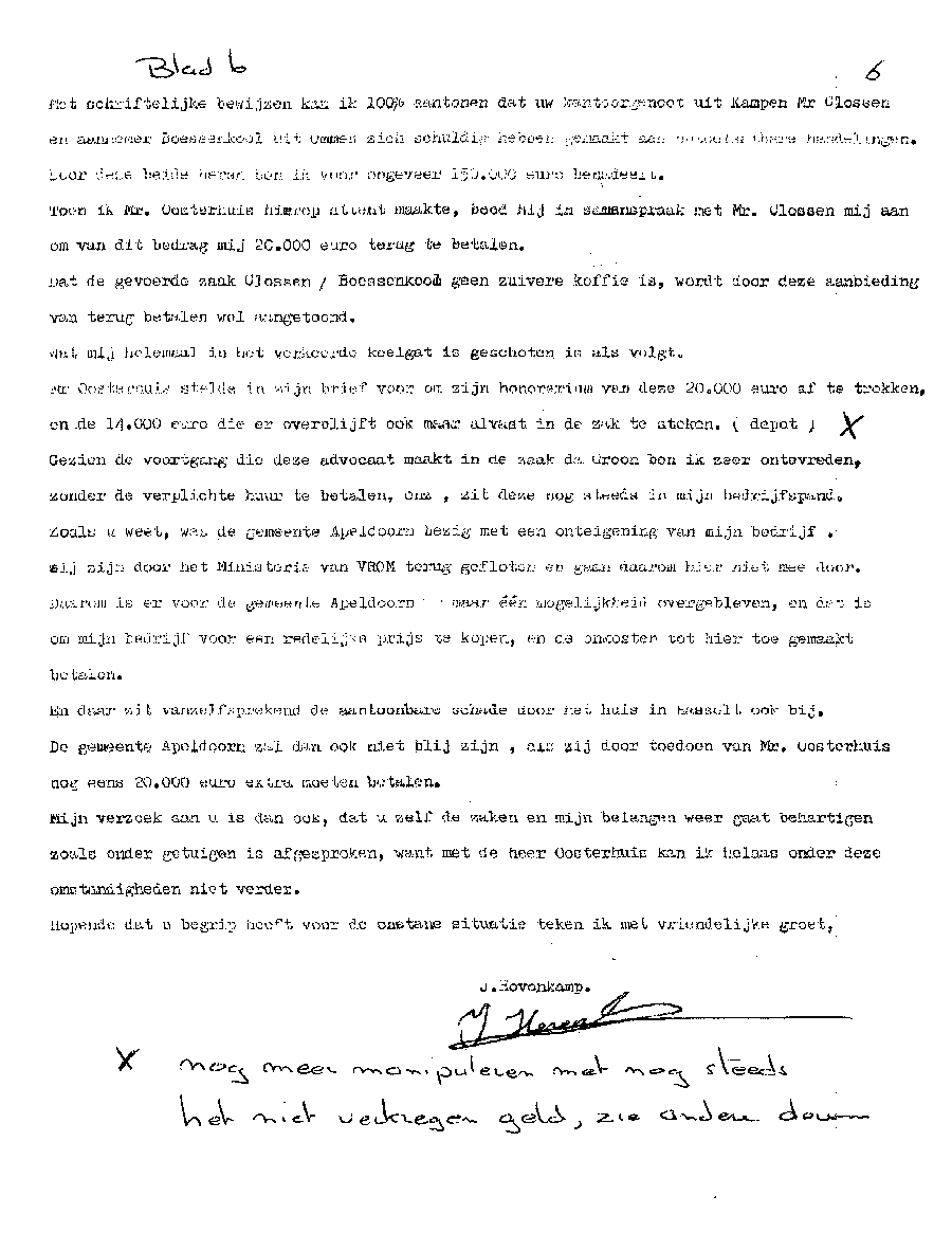 Tot slot laat ik u weten dat tijdens de drie dagen van 19 tot 21 mei er een spookfax is verstuurd naar de rechtbank in Haarlem met een valse handtekening van mij, waarin ik mijn zaak van smaad/laster zou hebben ingetrokken. Op valse beschuldiging zat ik die drie dagen namelijk vast in een politiecel in Alkmaar. Die fax met het verzoek om mijn zaak in te trekken kan ik niet zelf hebben gestuurd. De kring waarin die valse fax is opgemaakt en werd verzonden is zeer klein en beperkt zich tot de Rechtbank en het OM in Alkmaar. Niemand daarbuiten wist van die zaak af. Dit is een schandaal van de hoogste orde.