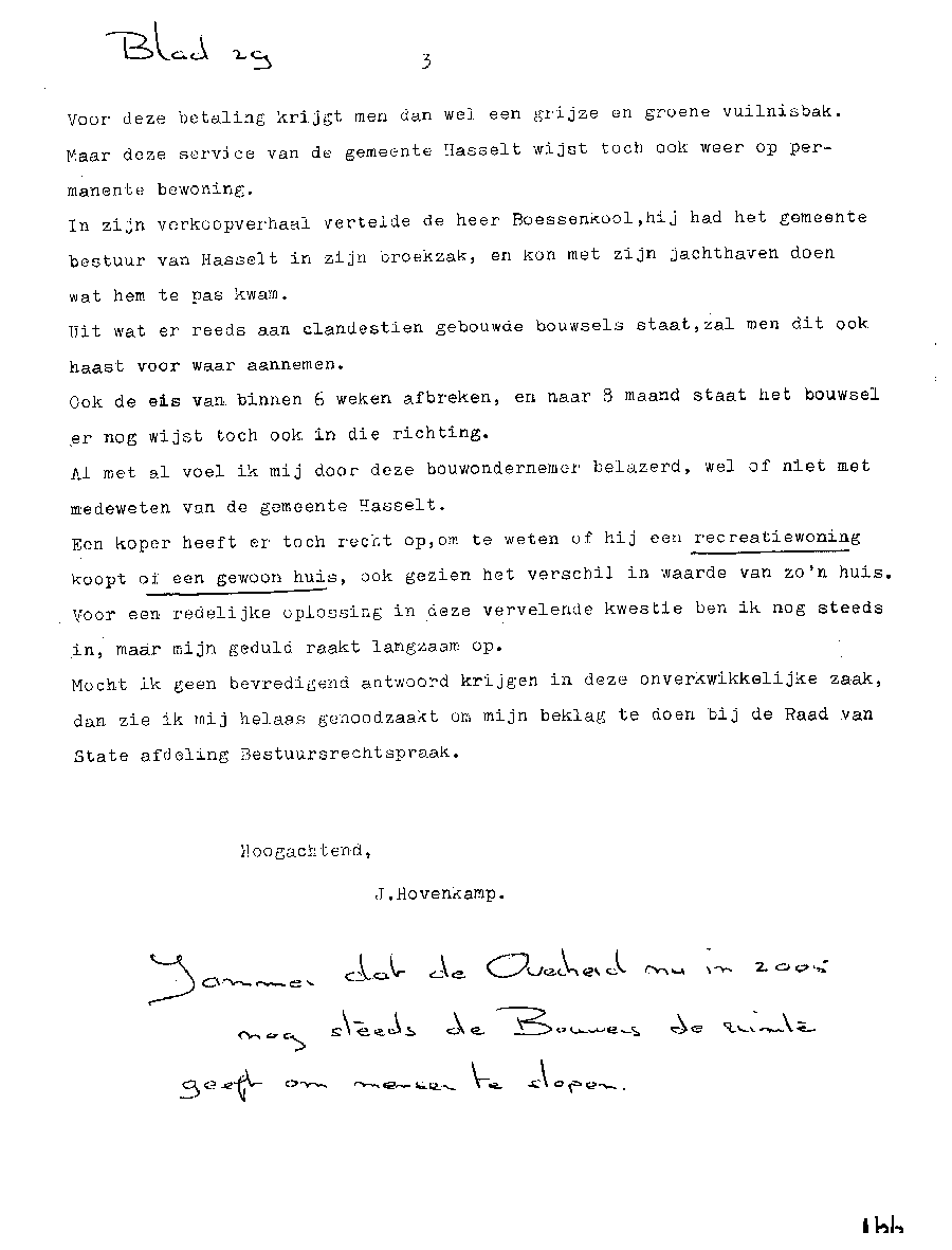 Voorlopige conclusie van Rietveld aan de recreanten en semi-permanente bewoners